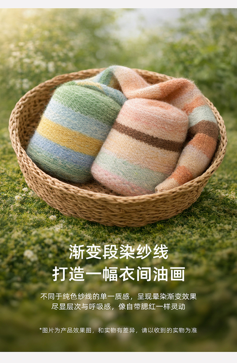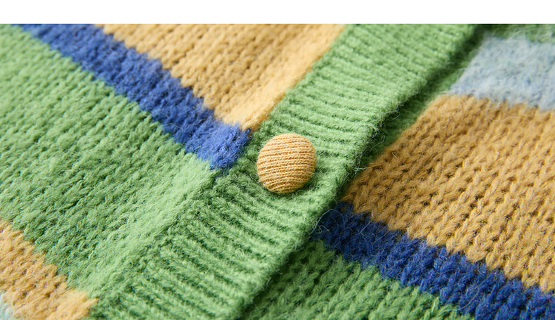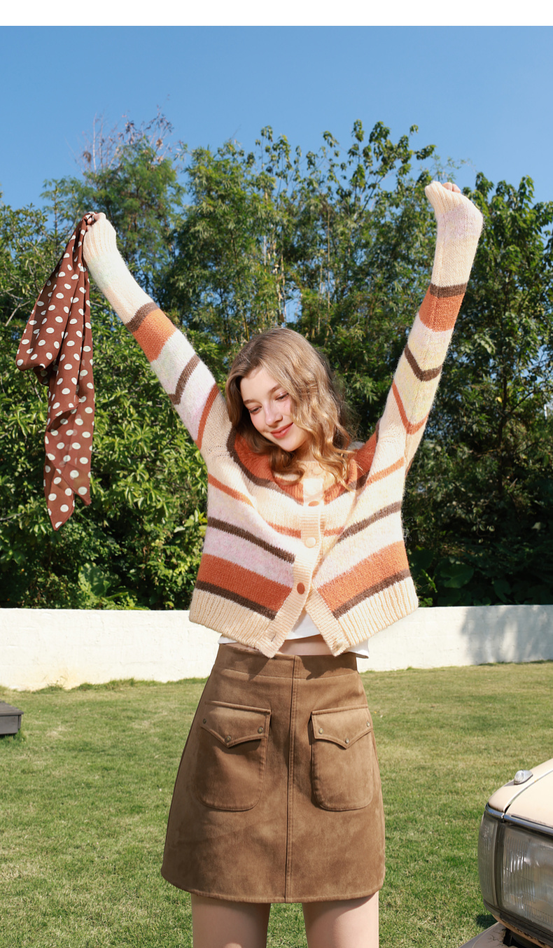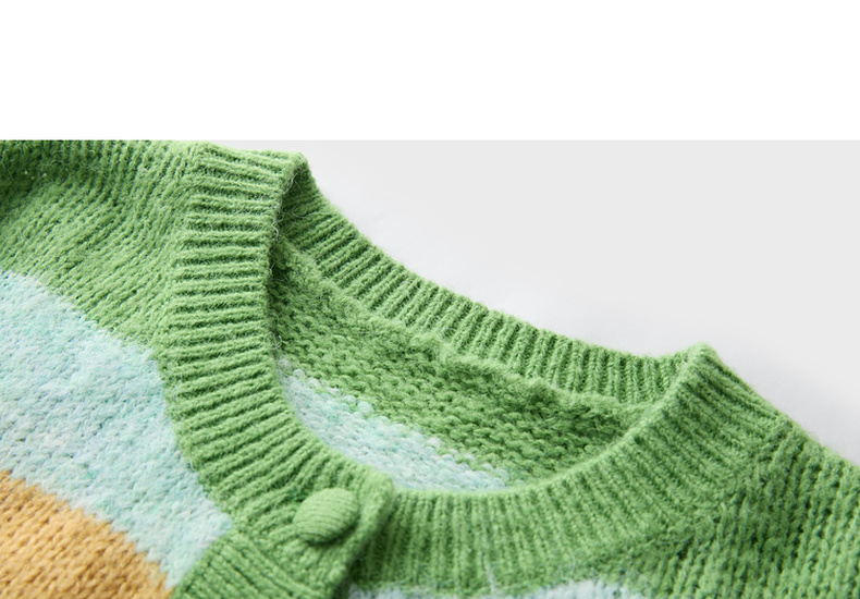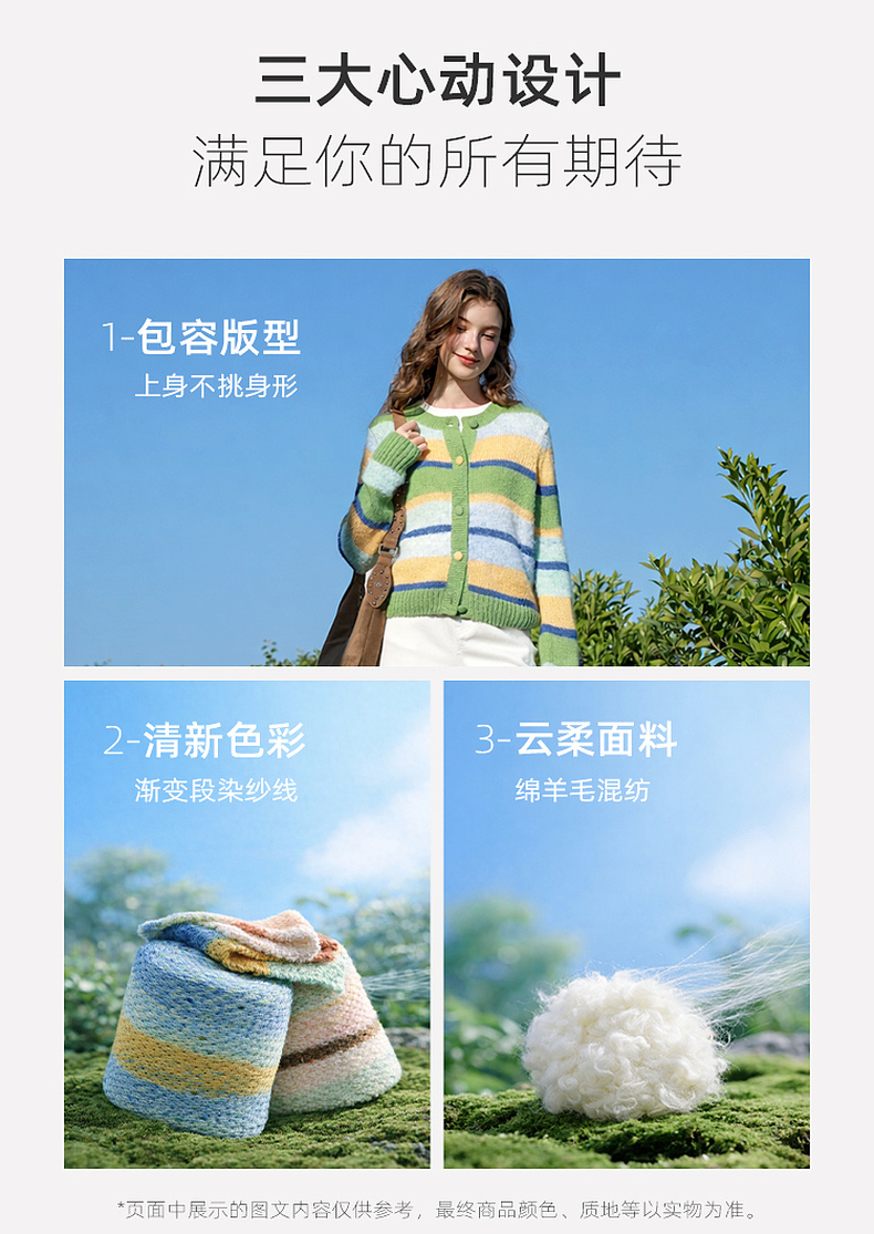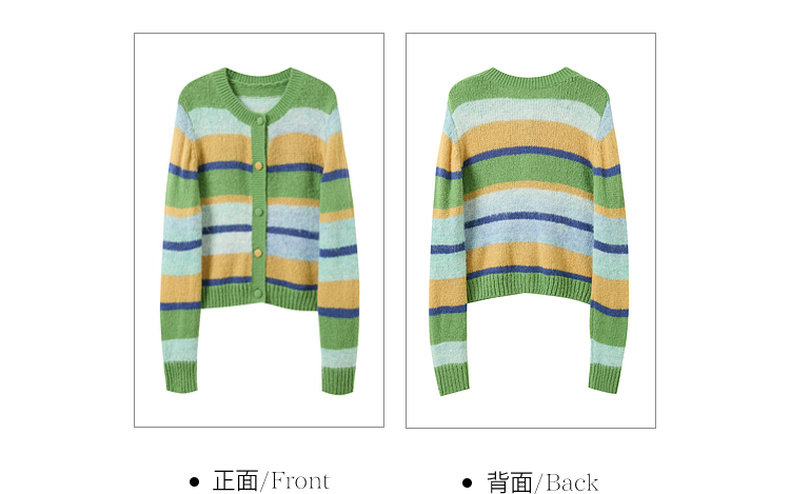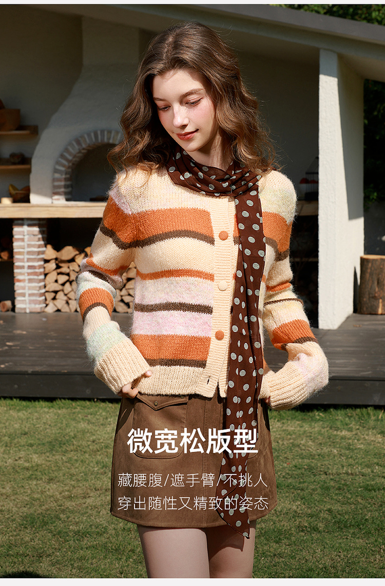 三彩2026春季新款渐变段染条纹针织衫圆领毛衫短款开衫宽松M