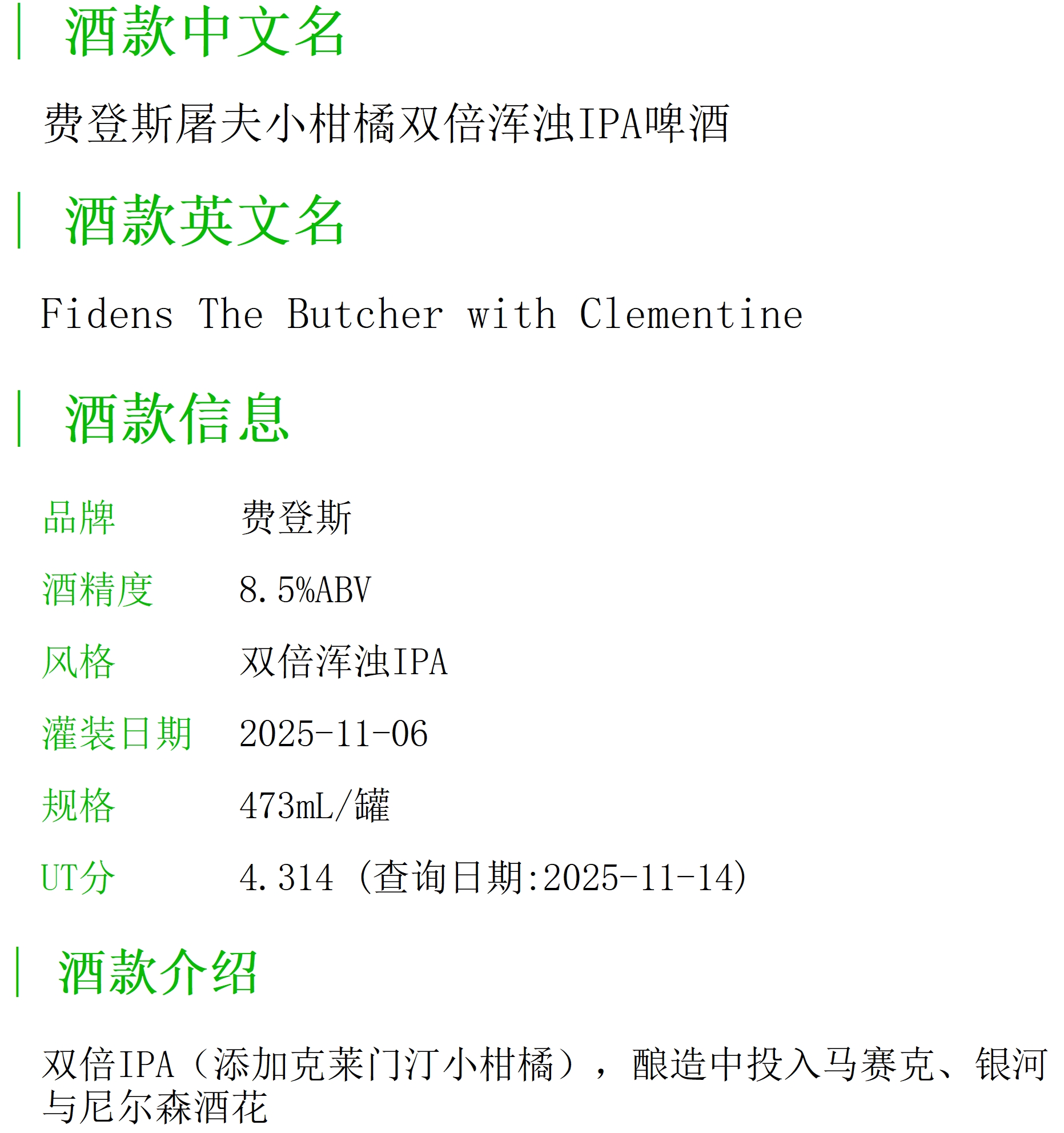 费登斯屠夫小柑橘双倍浑浊IPA啤酒