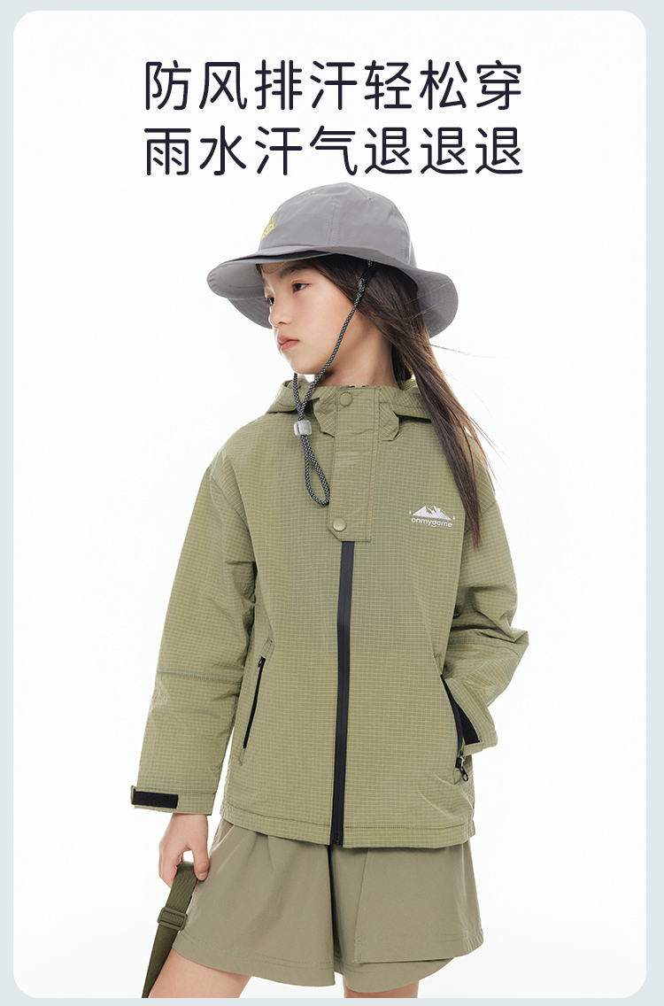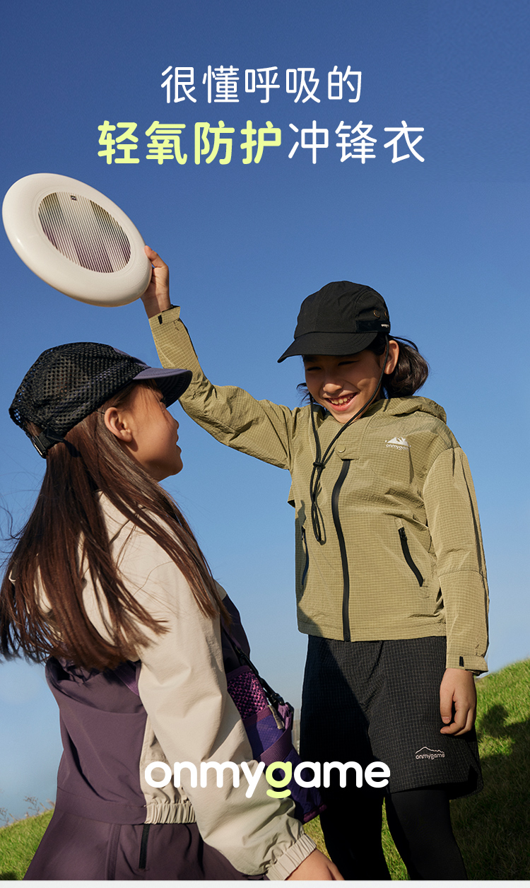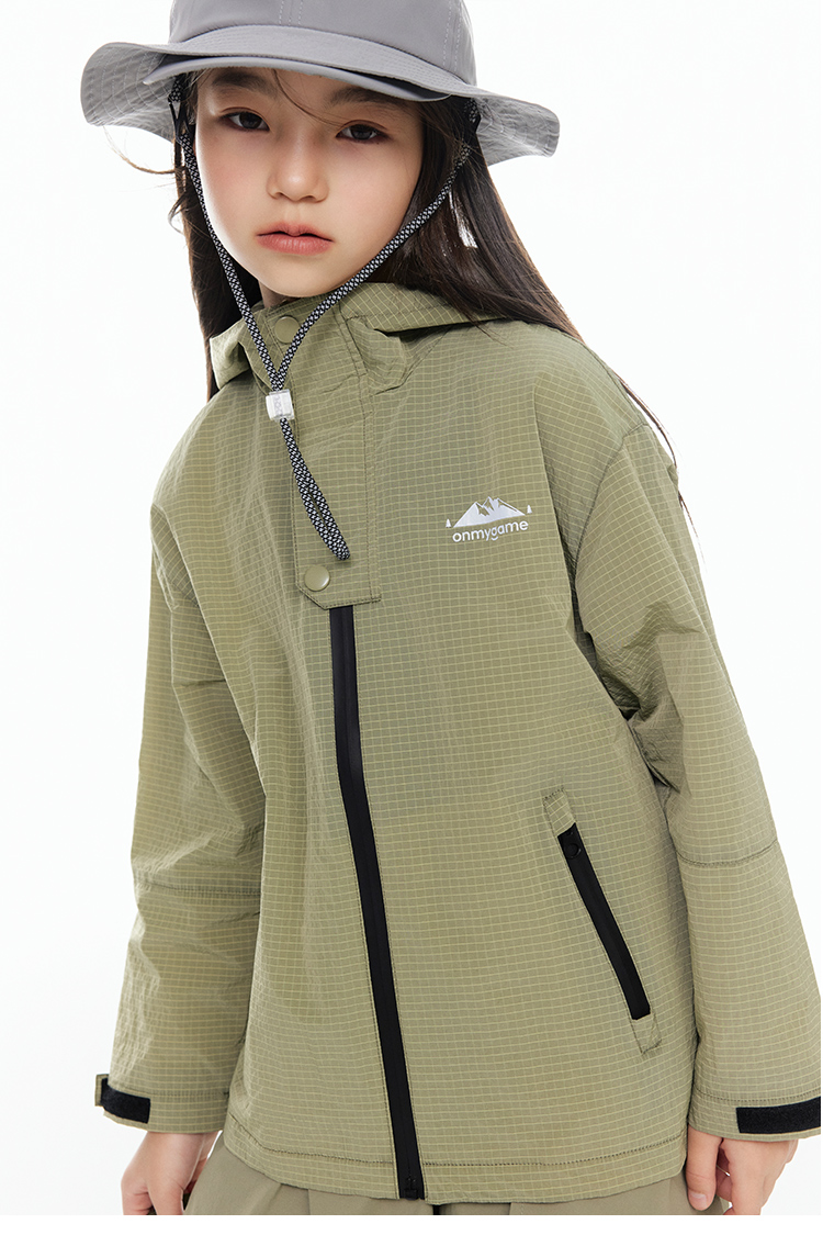 onmygame男童外套春装儿童防风防泼水童装户外运动连帽外套