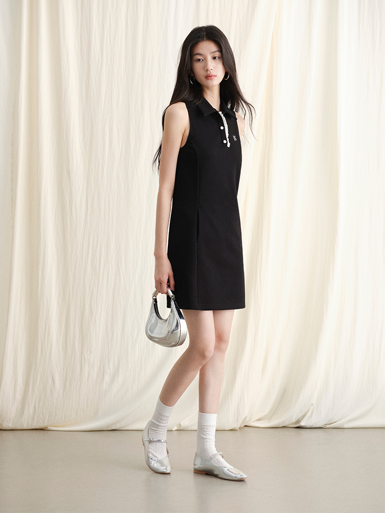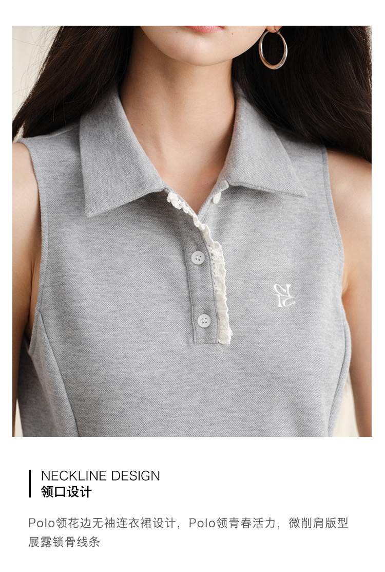 ForPoem 现货 24/SS原创设计花边装饰刺绣翻领Polo休闲连衣裙