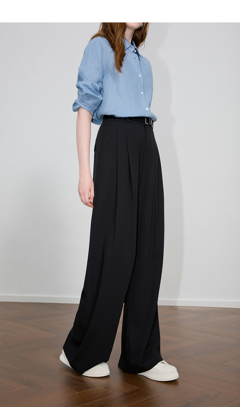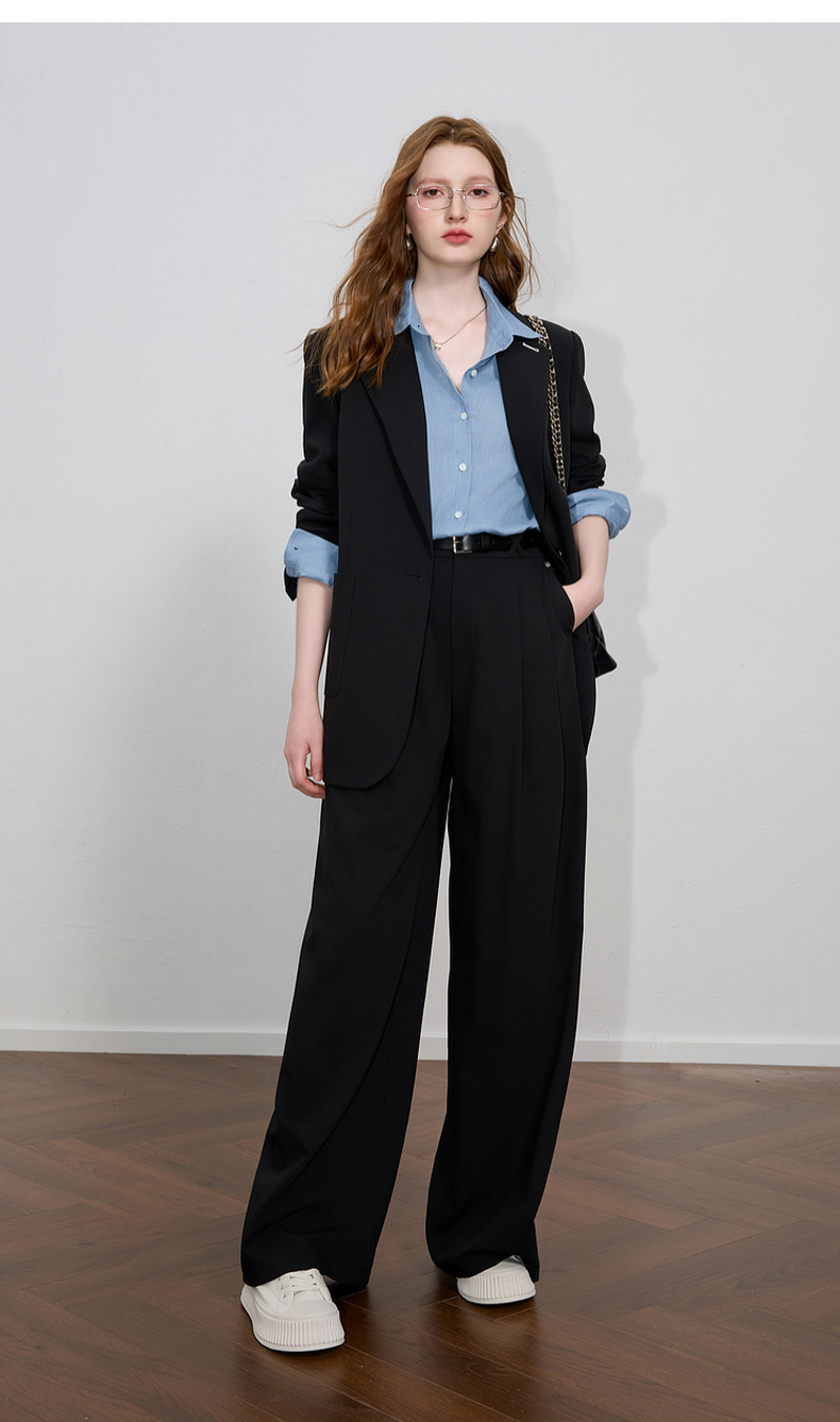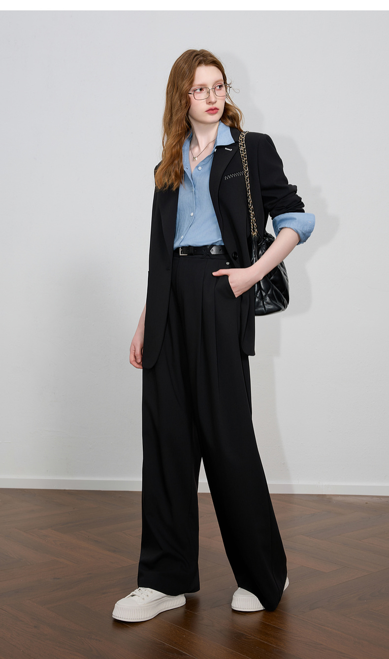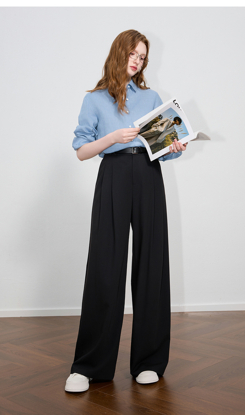 三彩2025秋季新款休闲长裤宽松垂感阔腿裤通勤西装裤气质显瘦S