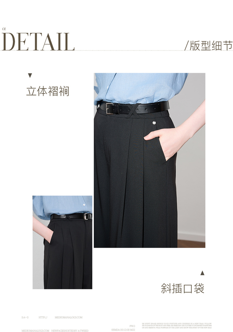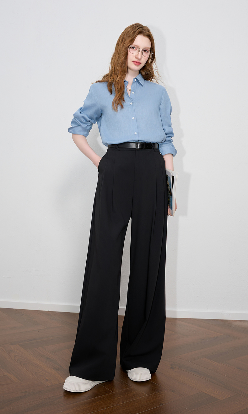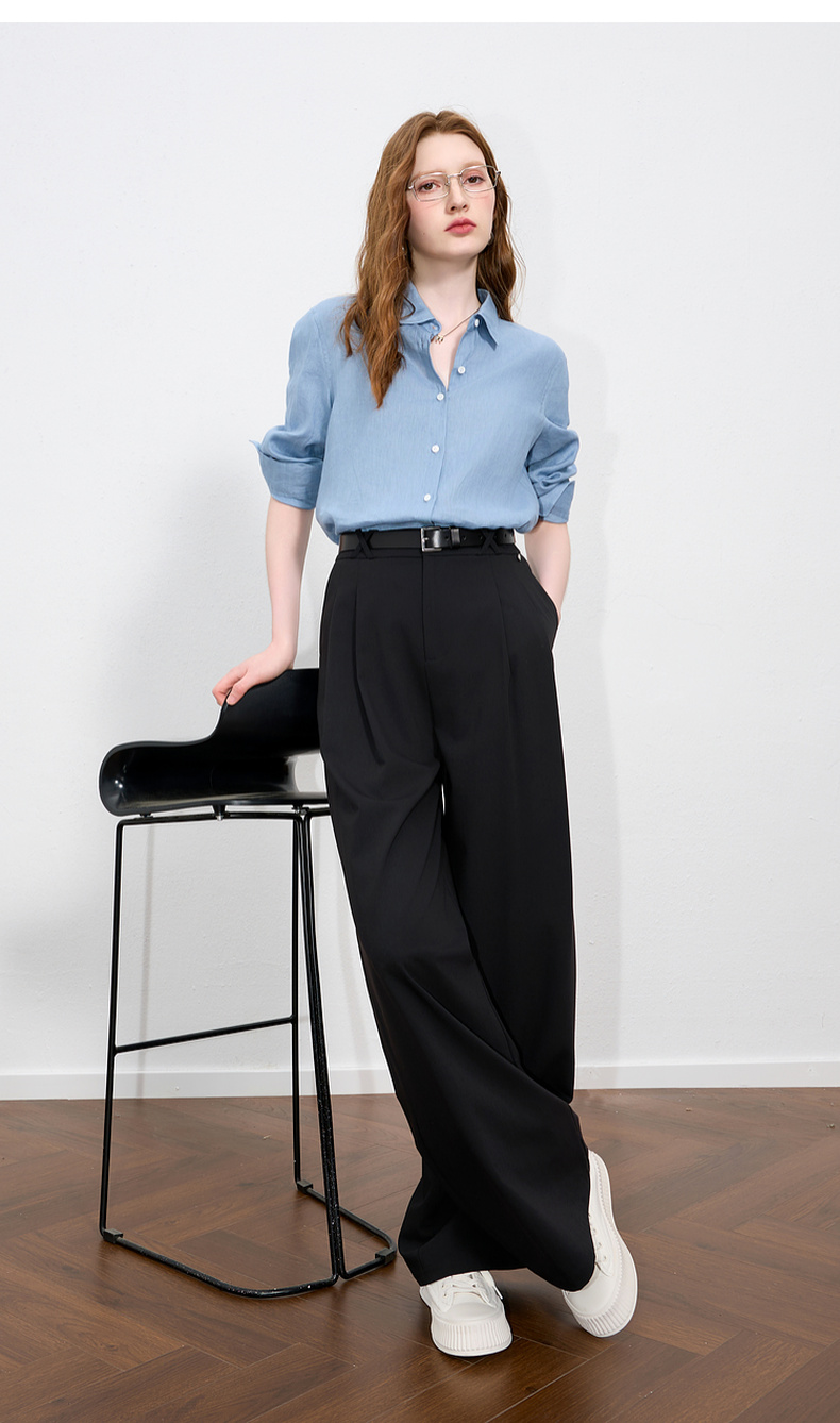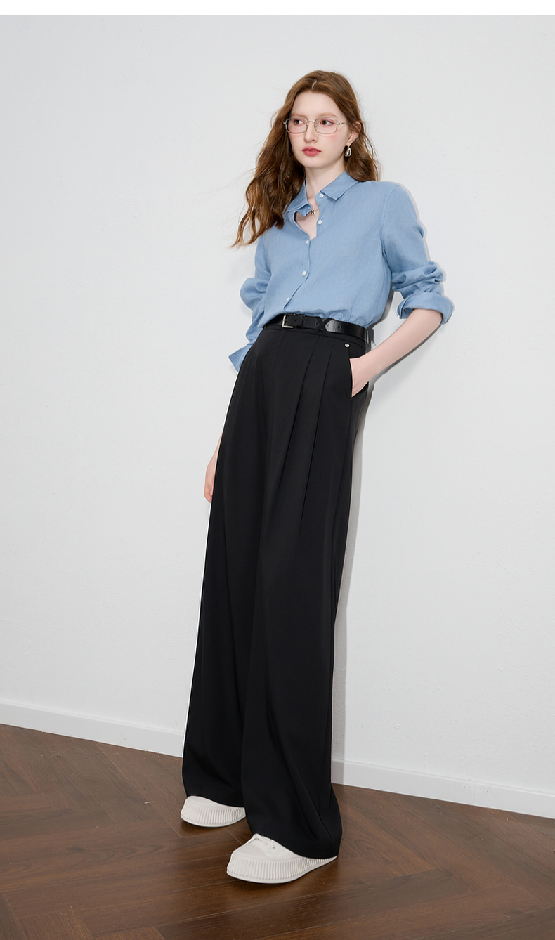 三彩2025秋季新款休闲长裤宽松垂感阔腿裤通勤西装裤气质显瘦S