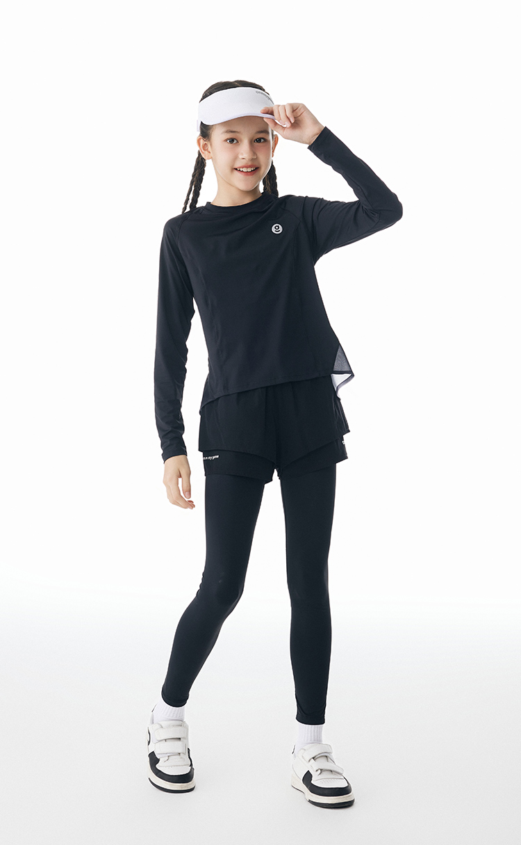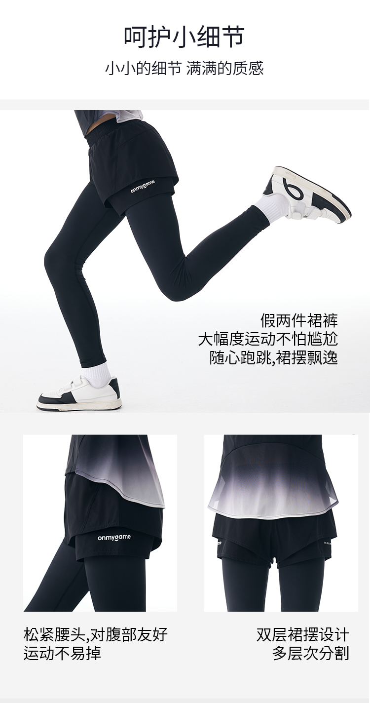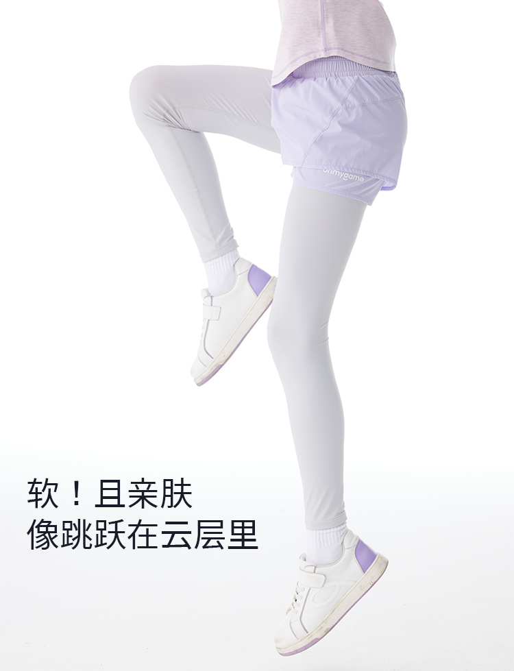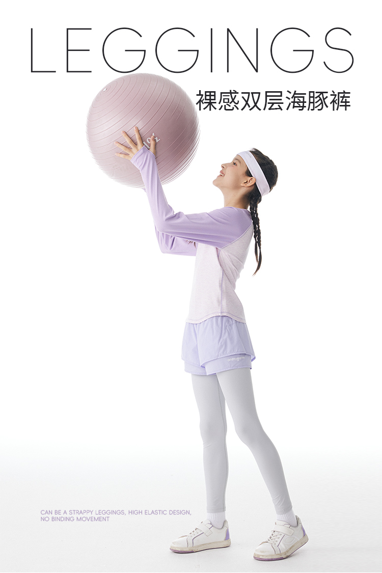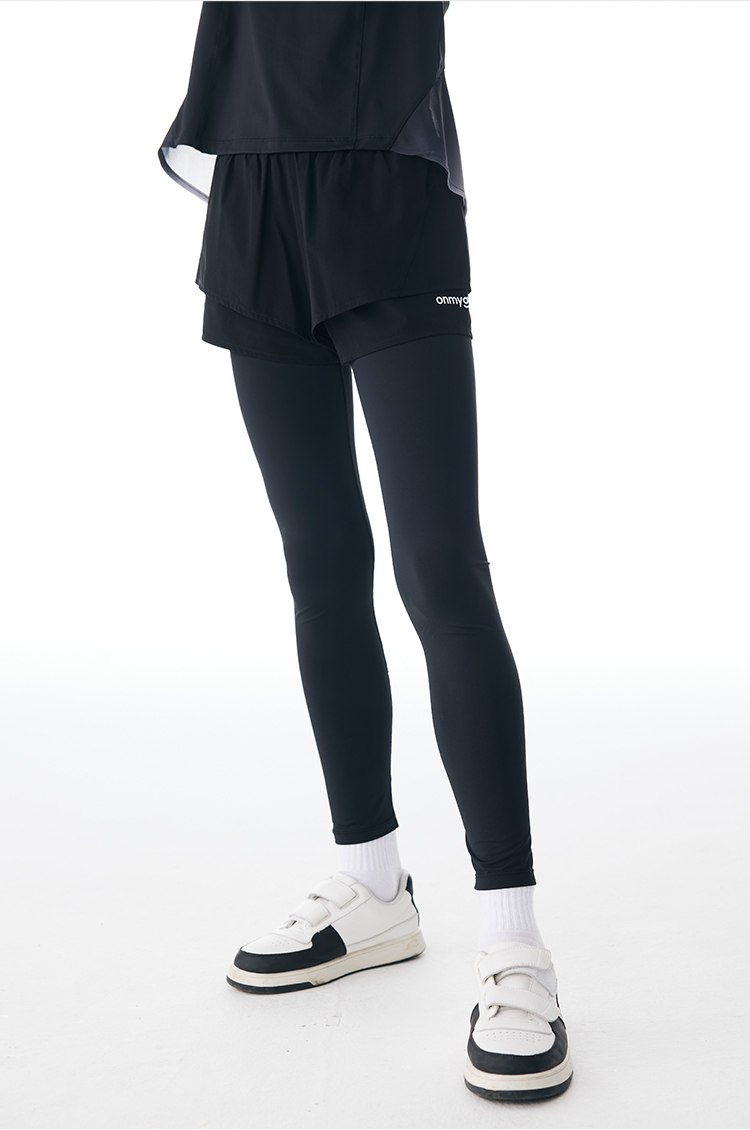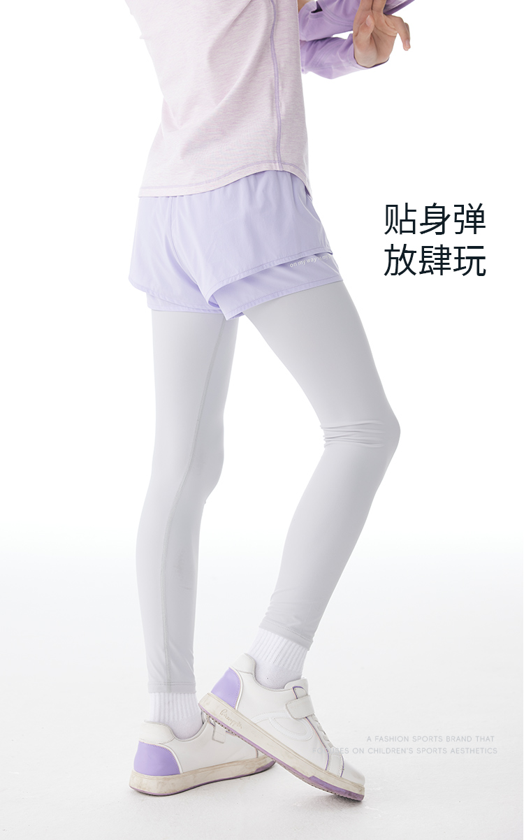onmygame女童假两件运动裤秋装儿童瑜伽裤紧身裤套装长裤子