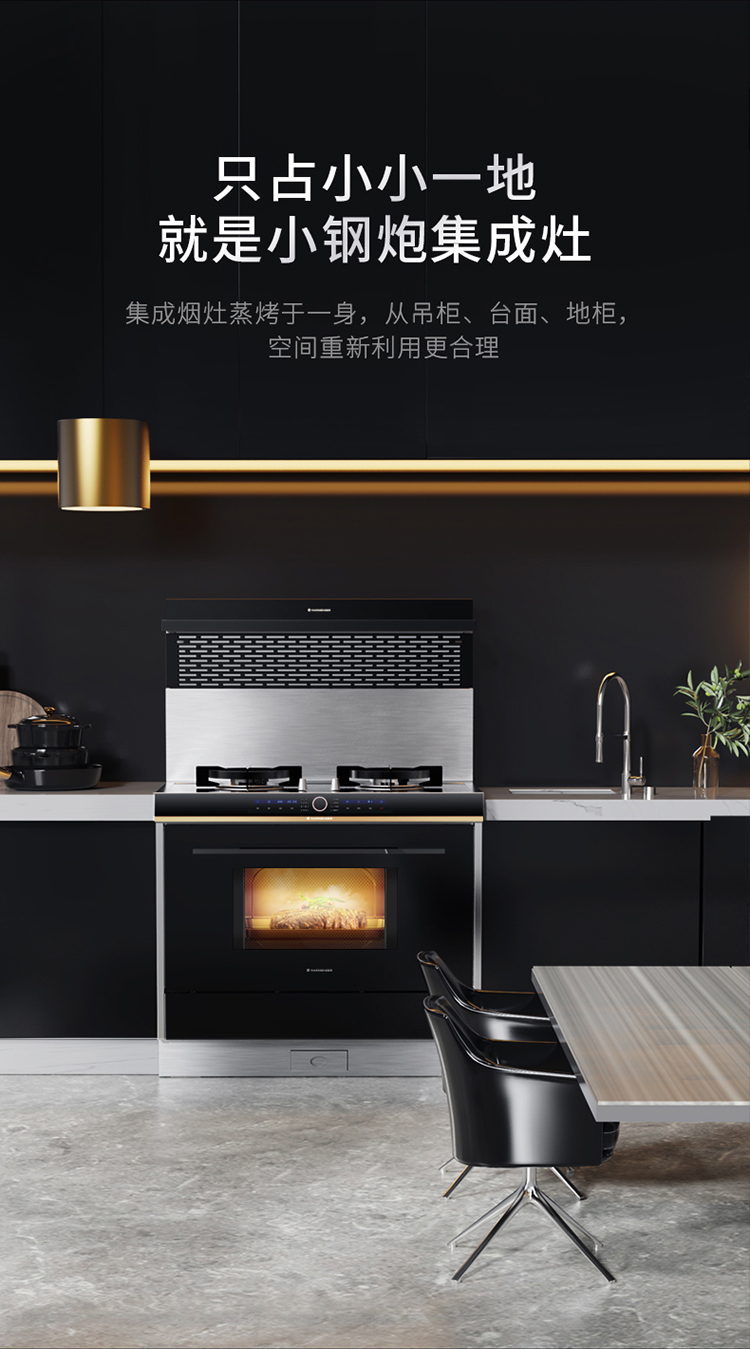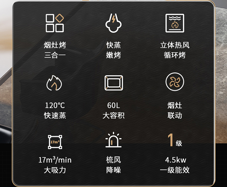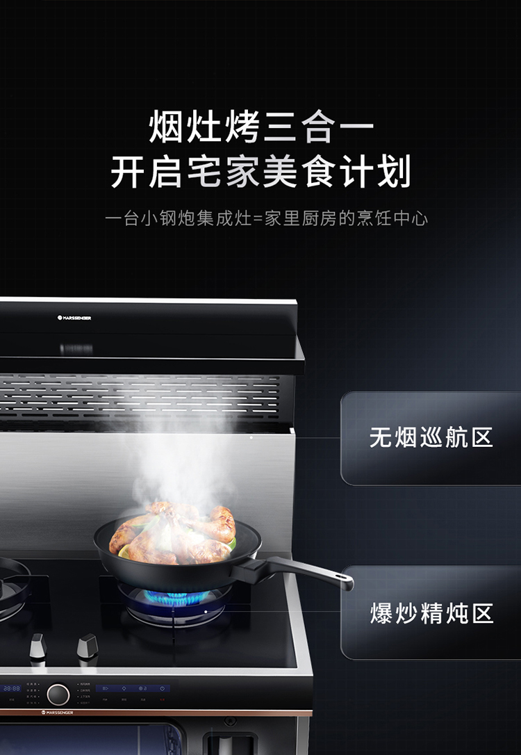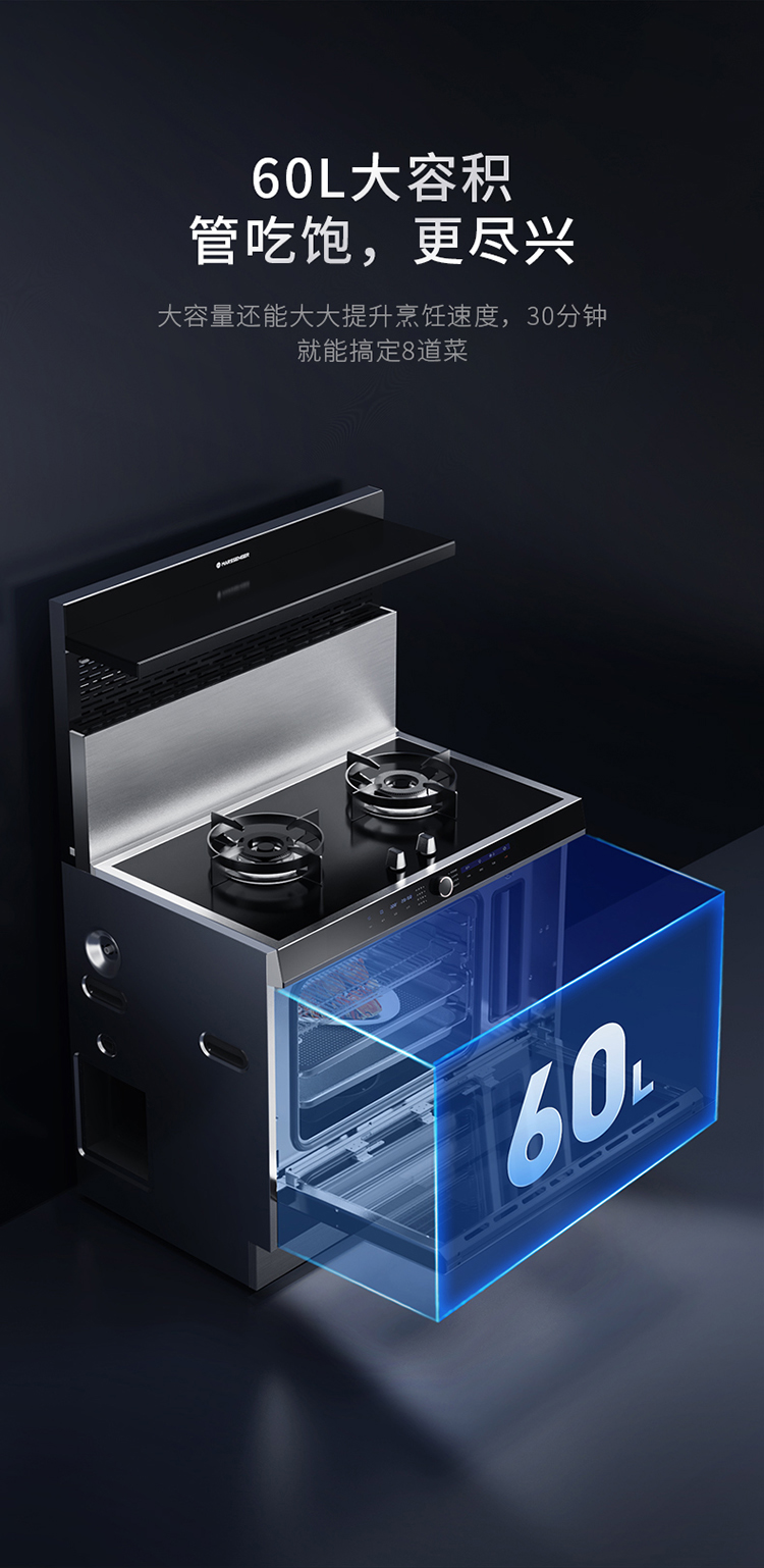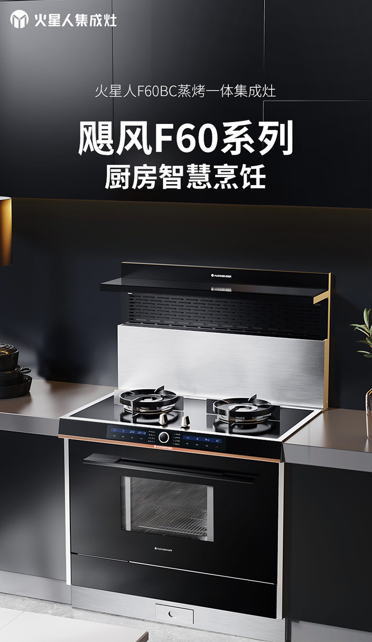 火星人 F60BC 天然气 蒸烤一体集成灶侧吸抽油烟机烟灶套装燃气灶玻璃台面