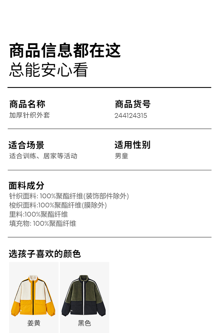 【特惠福利】UnderArmour安德玛儿童加厚针织外套244124315
