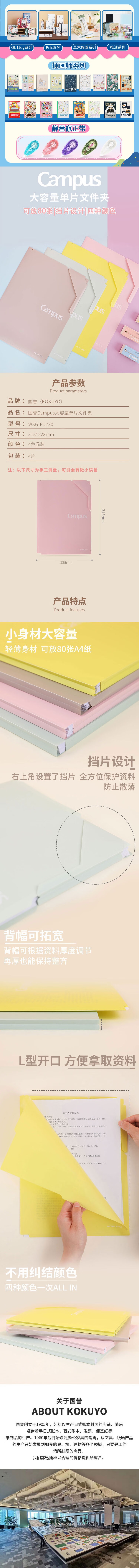 国誉Campus大容量单片文件夹(4色混装) A4 4片装 WSG-FU730