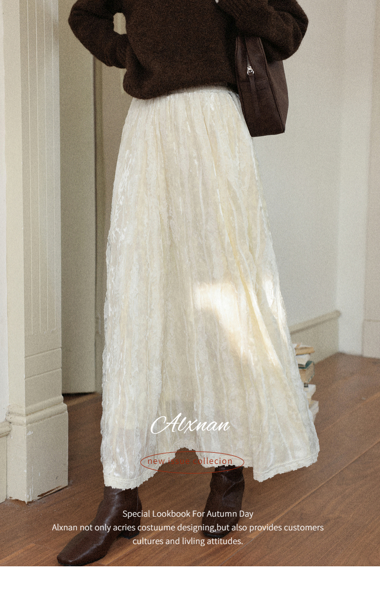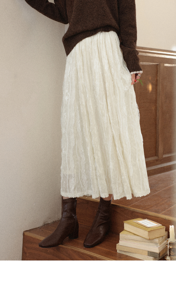 鹿向南【1220/20:00新品前1小时7折限量100件】杏色丝绒半身裙女