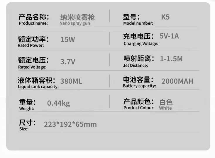 品名:全新纳米喷雾蓝光消毒枪