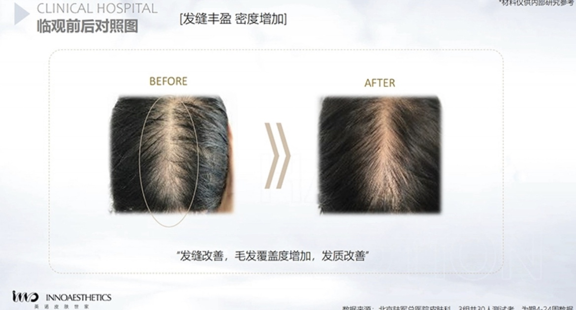 “发缝丰盈,毛发覆盖度增加,发质改善”