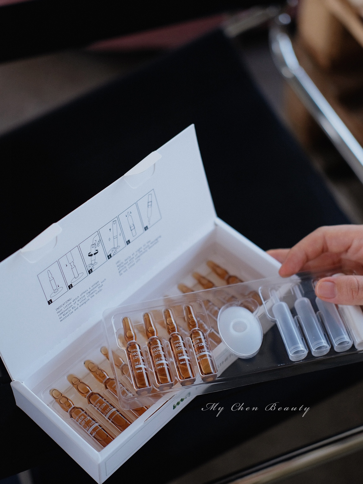 将头皮安瓶直接滴在柑气楼导入梳里