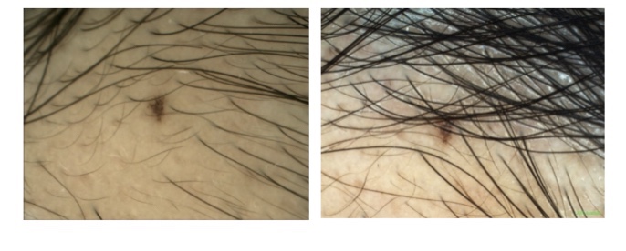 “额头毛发增多,毛发覆盖度增加”