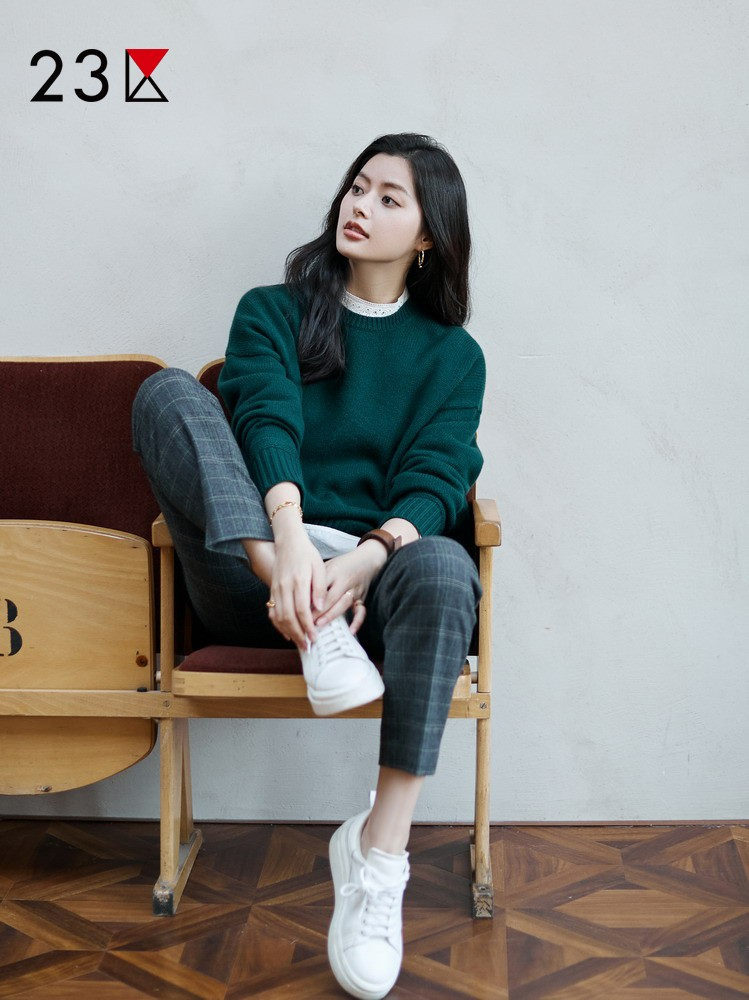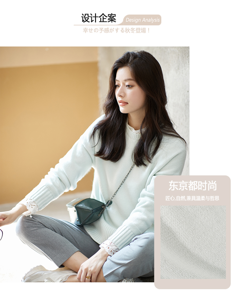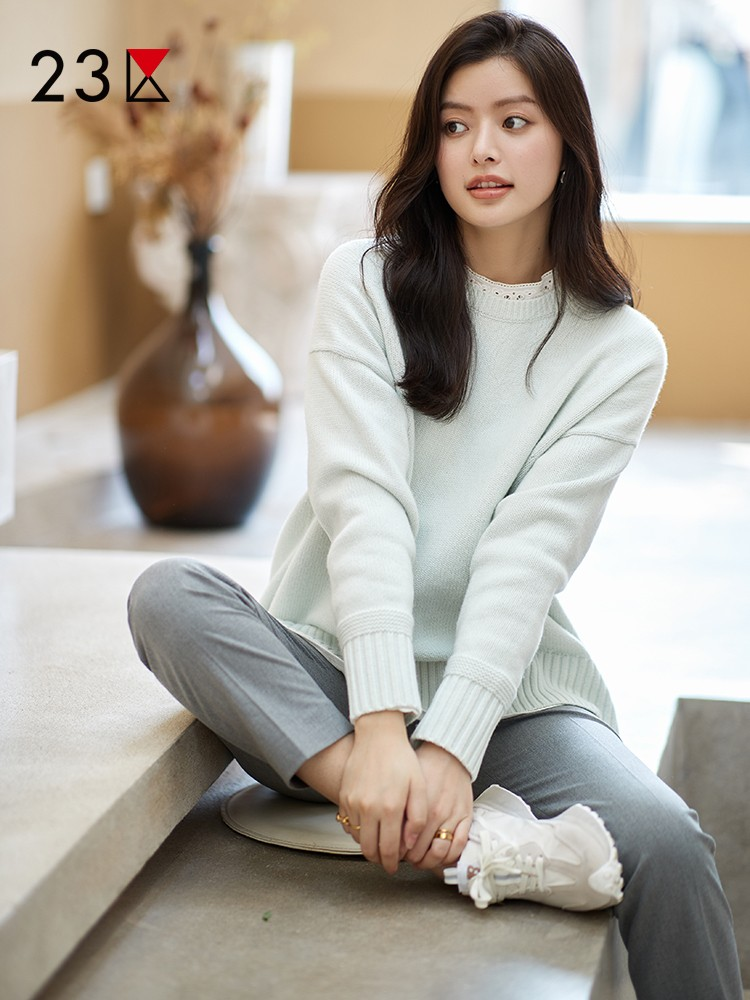 23区日系秋季通勤宽松羊毛羊绒混纺圆领套头毛衣针织毛衫商场同款