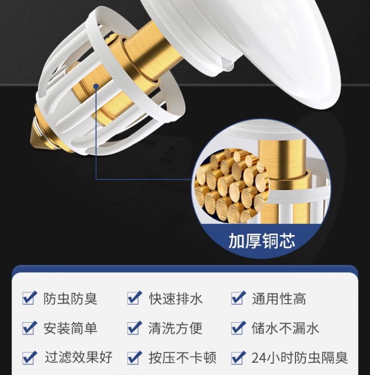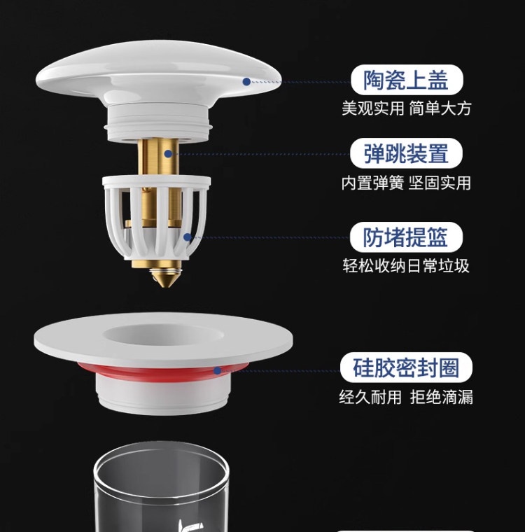 陶尔曼 浴室厨房洗脸盆配件 陶瓷洗手盆弹跳器防臭(铜芯)下水器