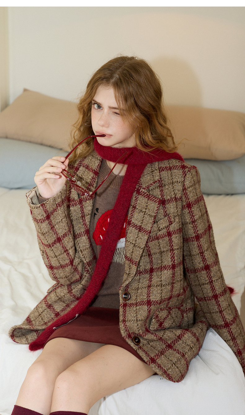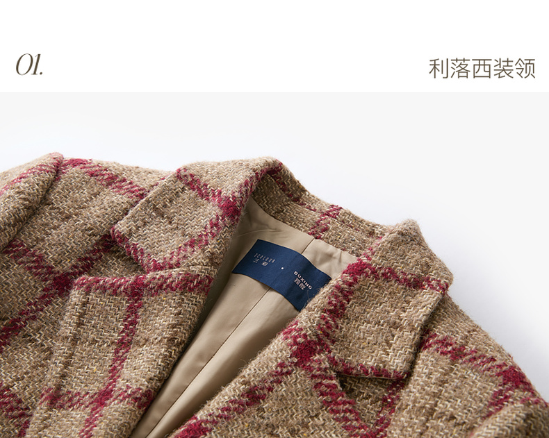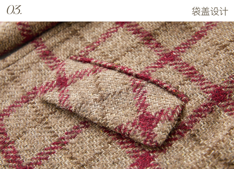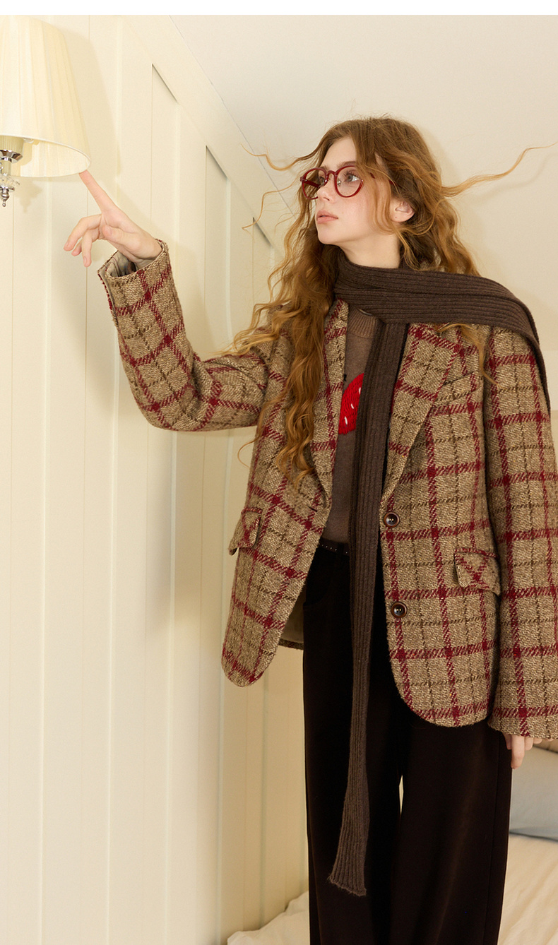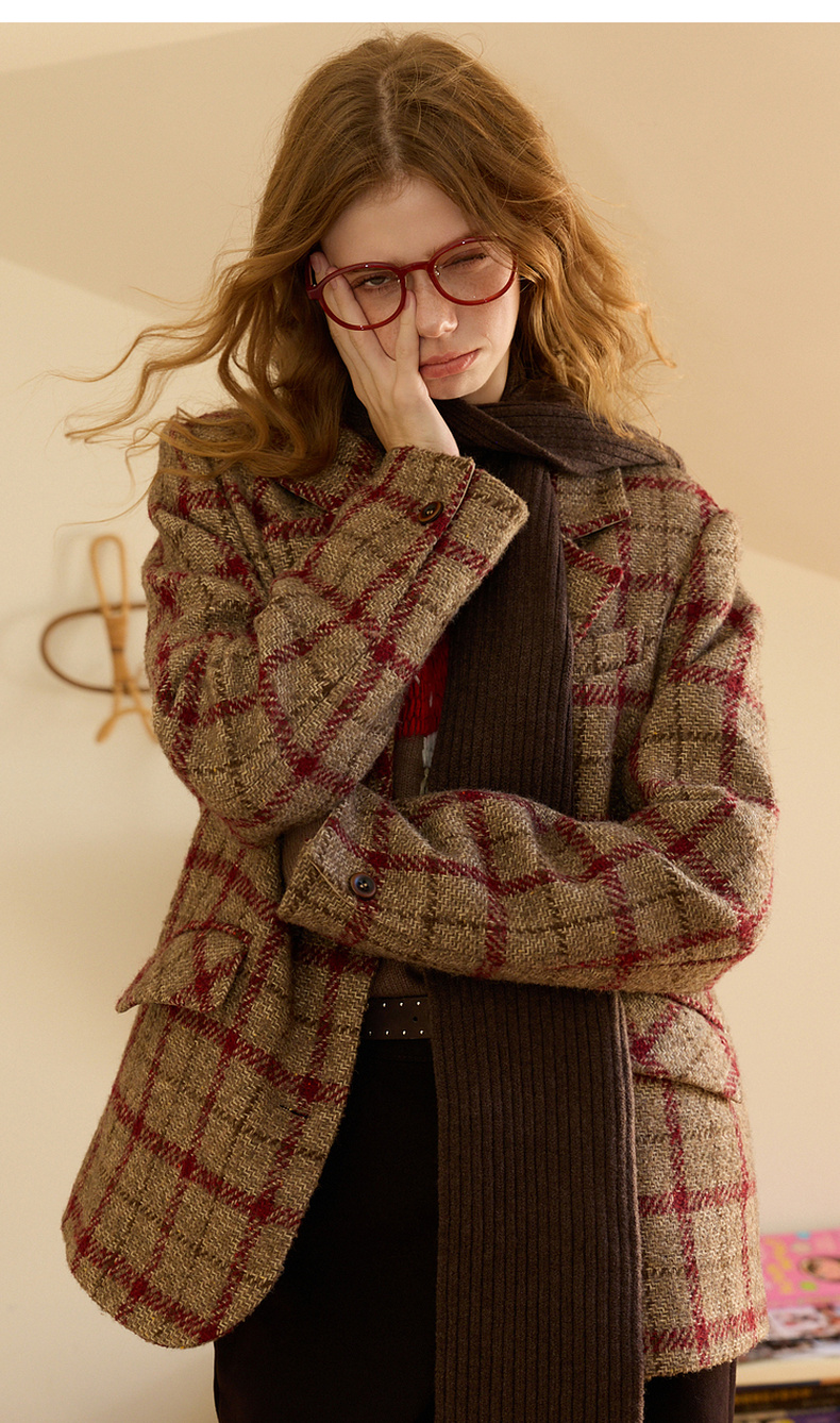 三彩独醒2025冬季新款格纹毛呢大衣西装宽松呢外套F