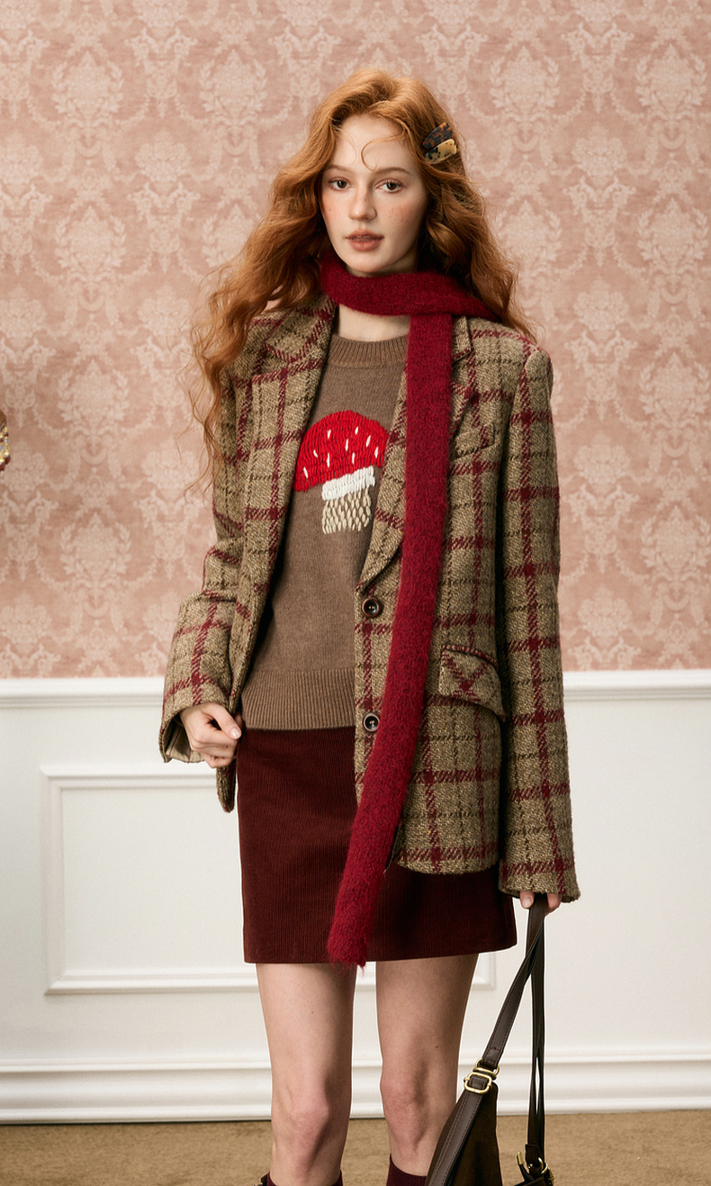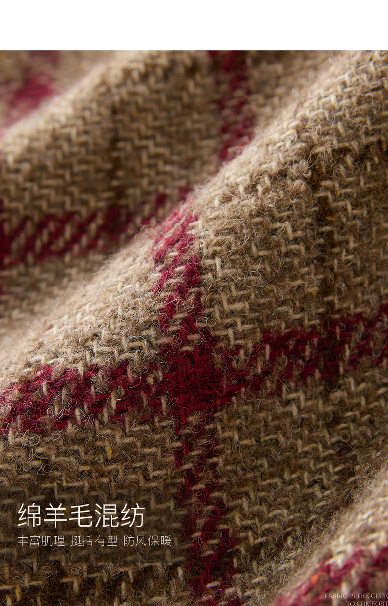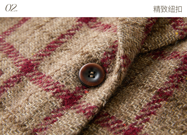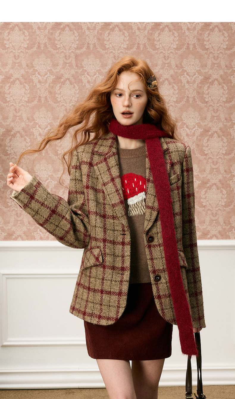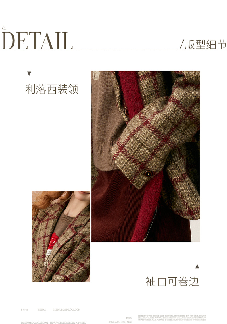 三彩独醒2025冬季新款格纹毛呢大衣西装宽松呢外套F