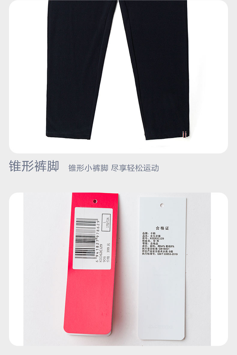 Kappa卡帕九分裤2023新款女黑色锥形裤运动休闲裤显瘦小脚卫裤