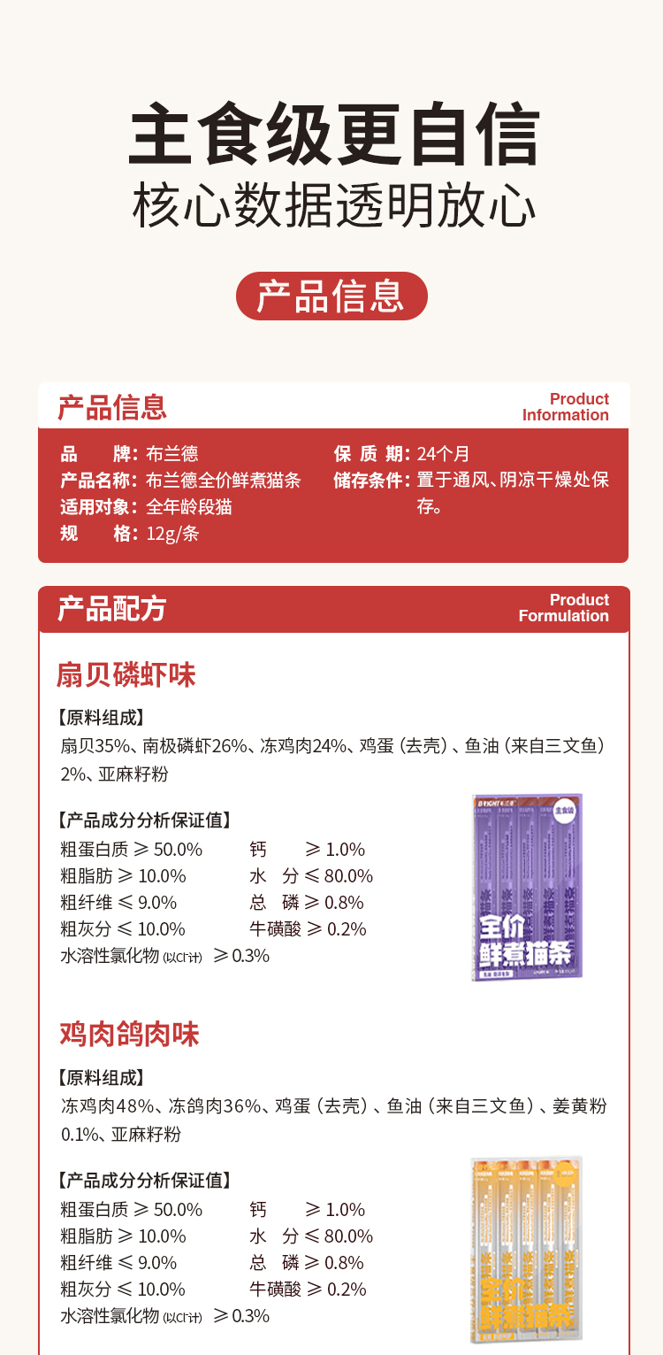 布兰德全价鲜煮主食猫条 5支装 小盒