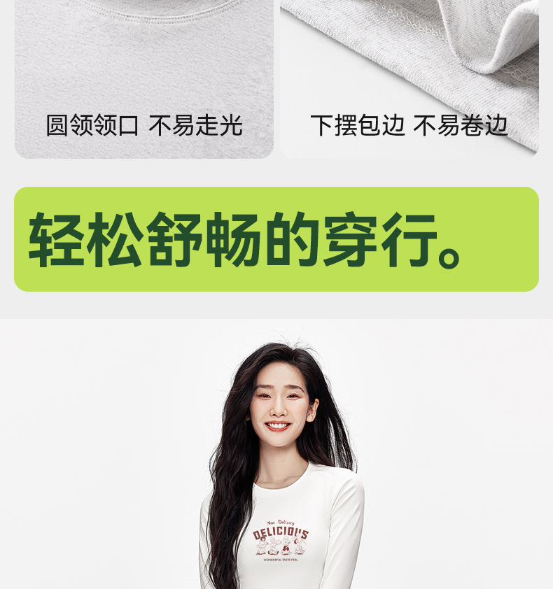「棉的美学」秋冬显瘦慵懒长袖T恤女印花韩版辣妹圆领修身衣服