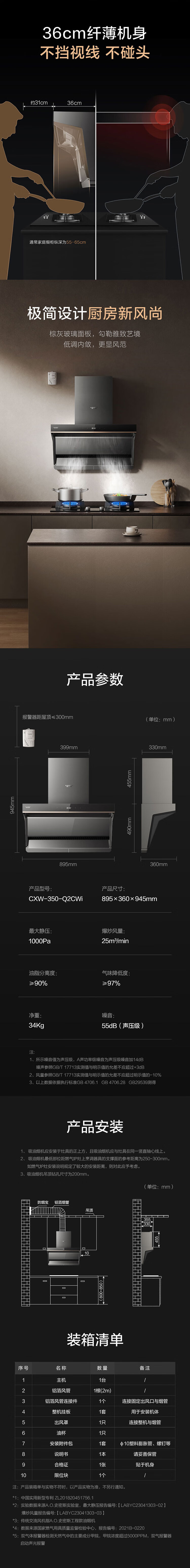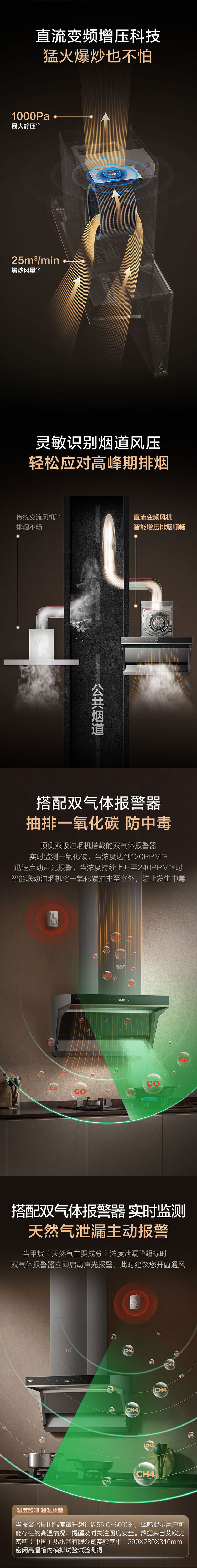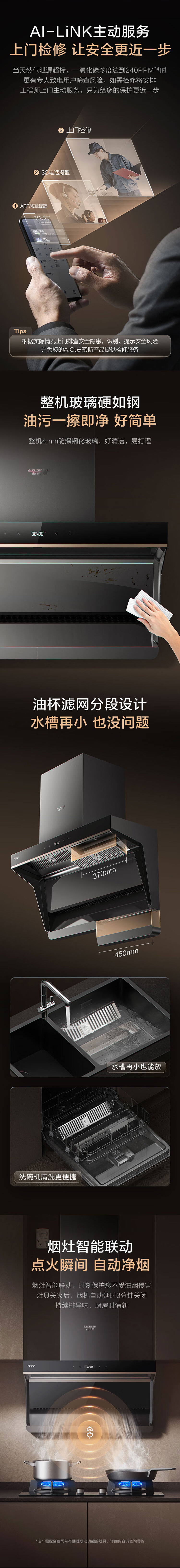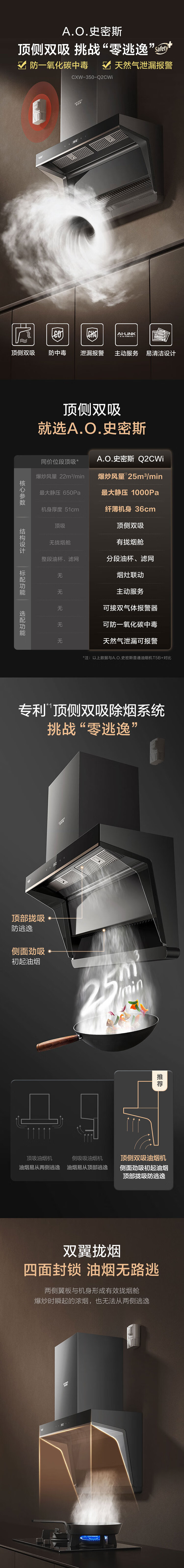 史密斯/烟机/CXW-350-Q2CWi/家用油烟机专利顶侧双吸除烟系统AI-LiNK吸力抽油烟机 黑色