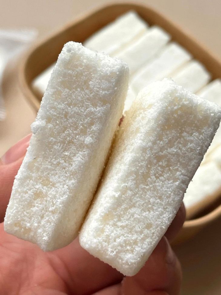 😅市面上的茯苓糕太多太多都是陷阱.... 有些干到噎喉咙的粉坨子 还有香精调出的假米香😩 更有齁甜到离谱的糖精味 根本吃不下去 咱的茯苓糕 湿润度拿捏得刚刚好 不齁不甜!! 冷藏后还会沁出冰冰凉凉的米浆感 细腻温润🥰