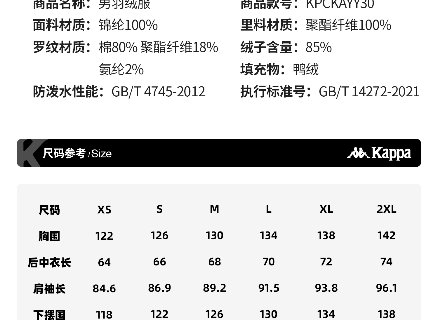 Kappa 运动羽绒服男2025新款连帽防泼水户外保暖外套KPCKAYY30