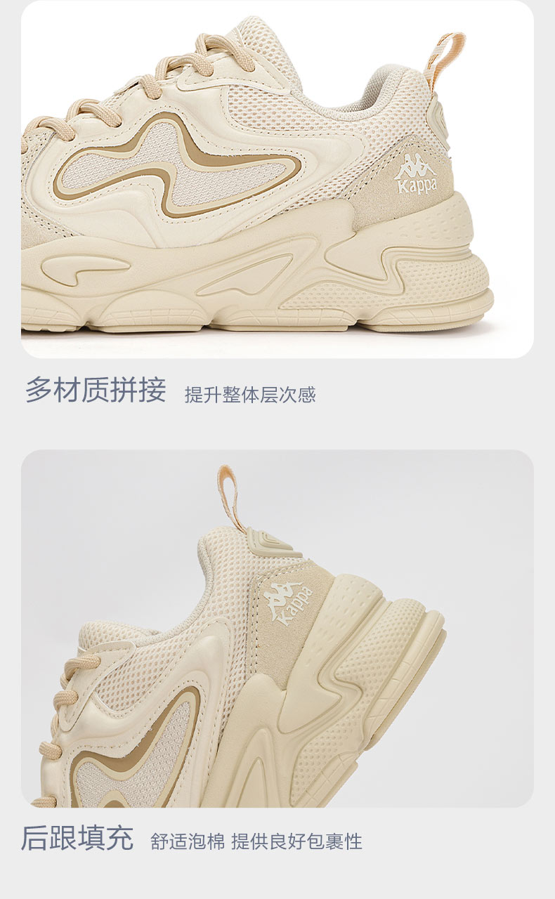 Kappa卡帕潮流跑鞋2023新款情侣男女运动复古跑鞋拼接厚底老爹鞋