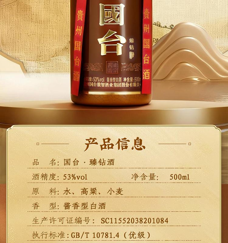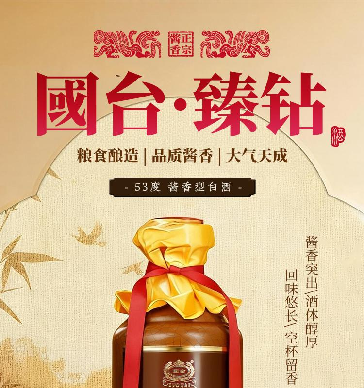 【直播爆款】国台 臻钻 酱香型白酒 53度 礼盒装 500ml*4整箱(非原箱 介意勿拍)