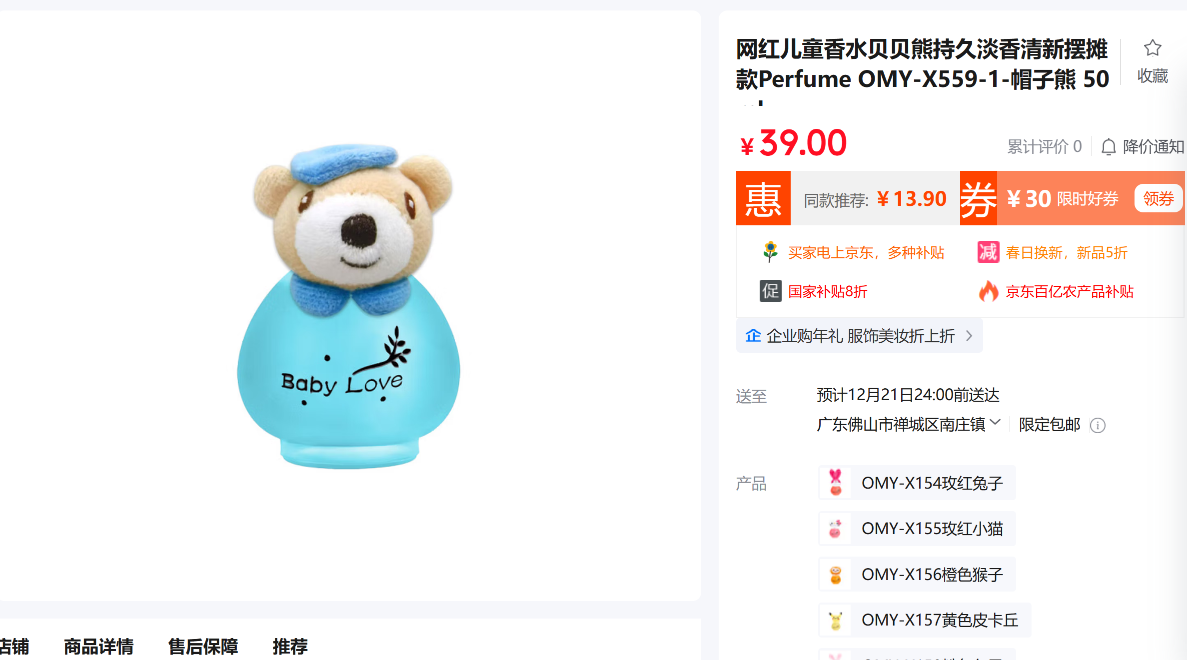 靓丽女孩贝贝熊香水 卡通款 持久淡香 室内香氛 50ml