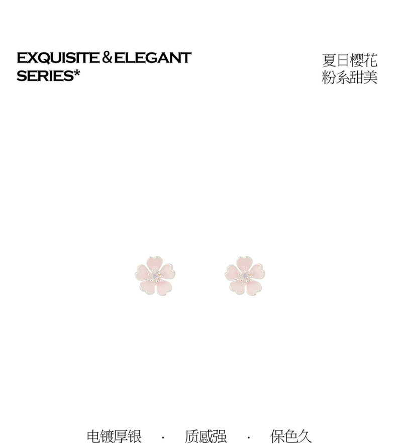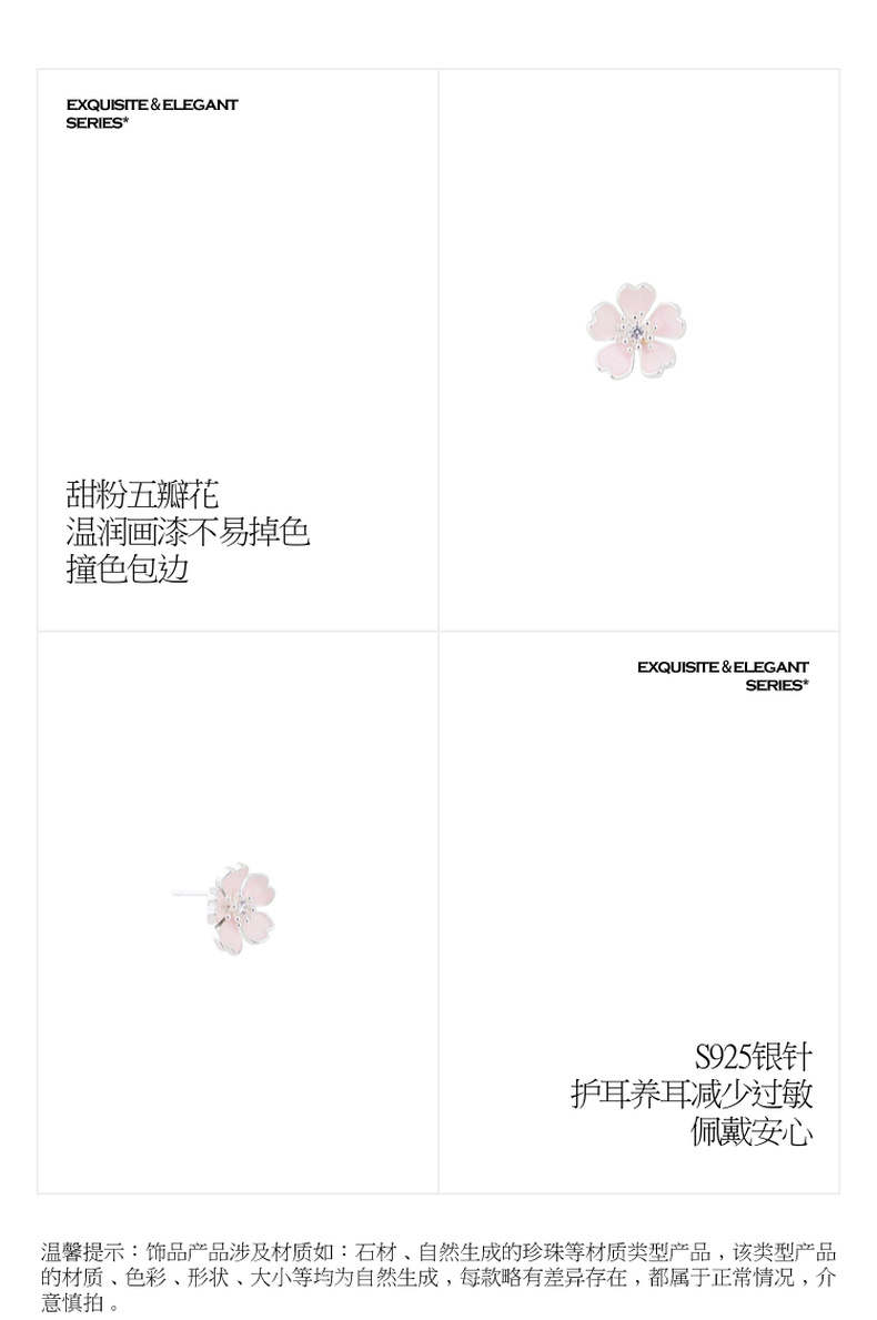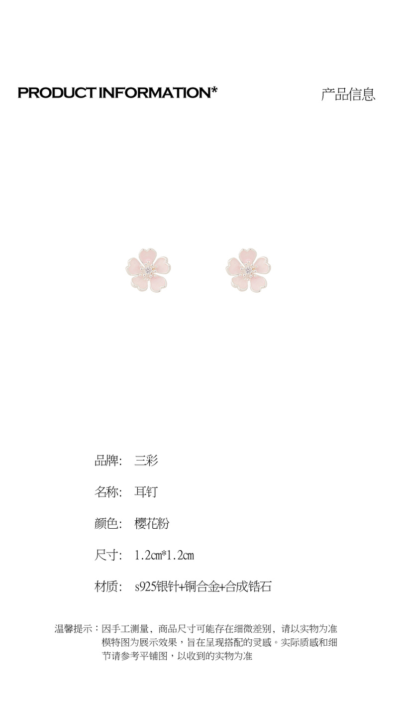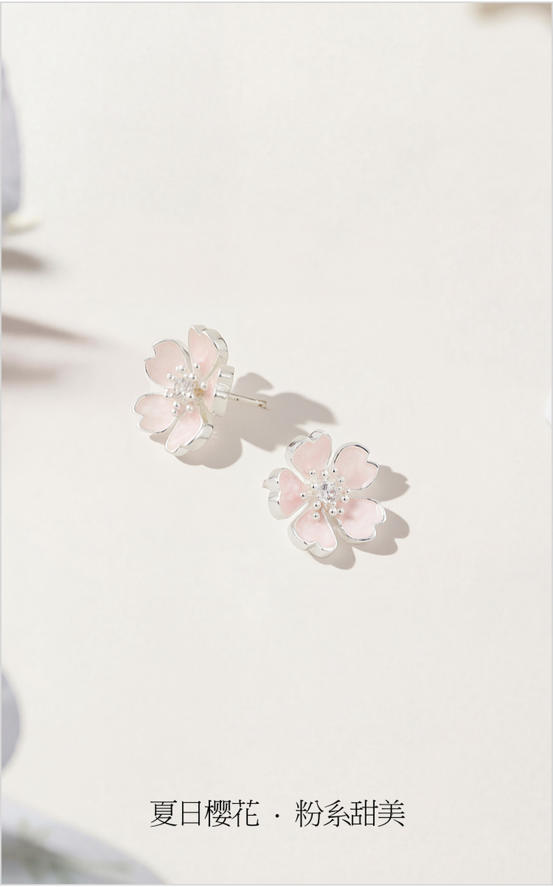 三彩2026新款法式甜美画漆五瓣樱花粉耳钉s925银针通勤约会女