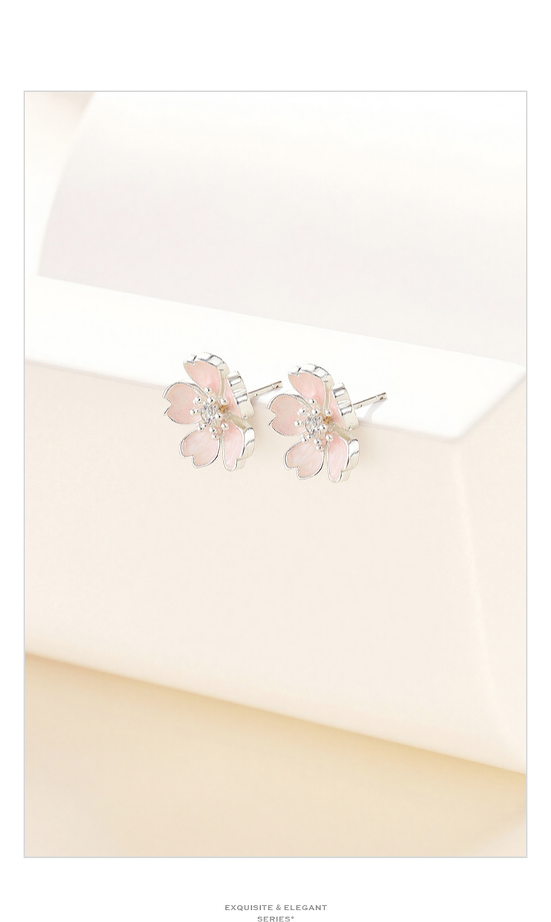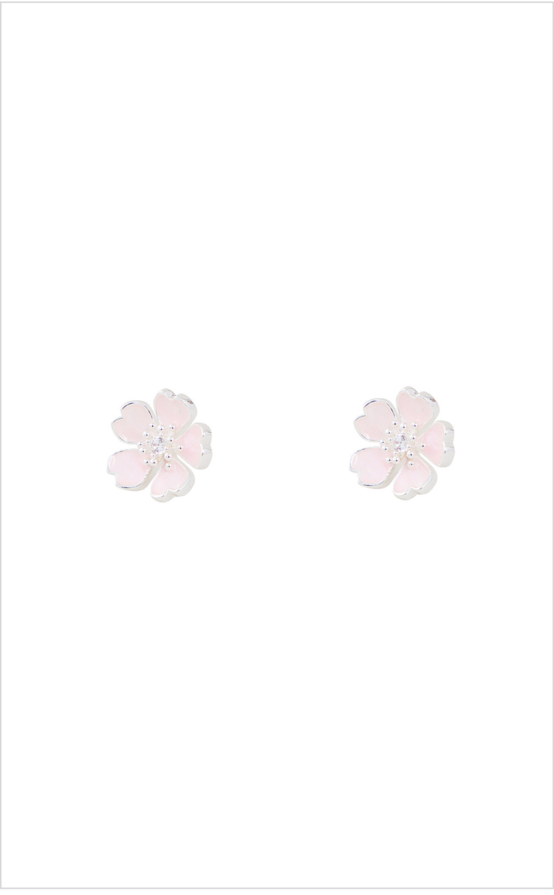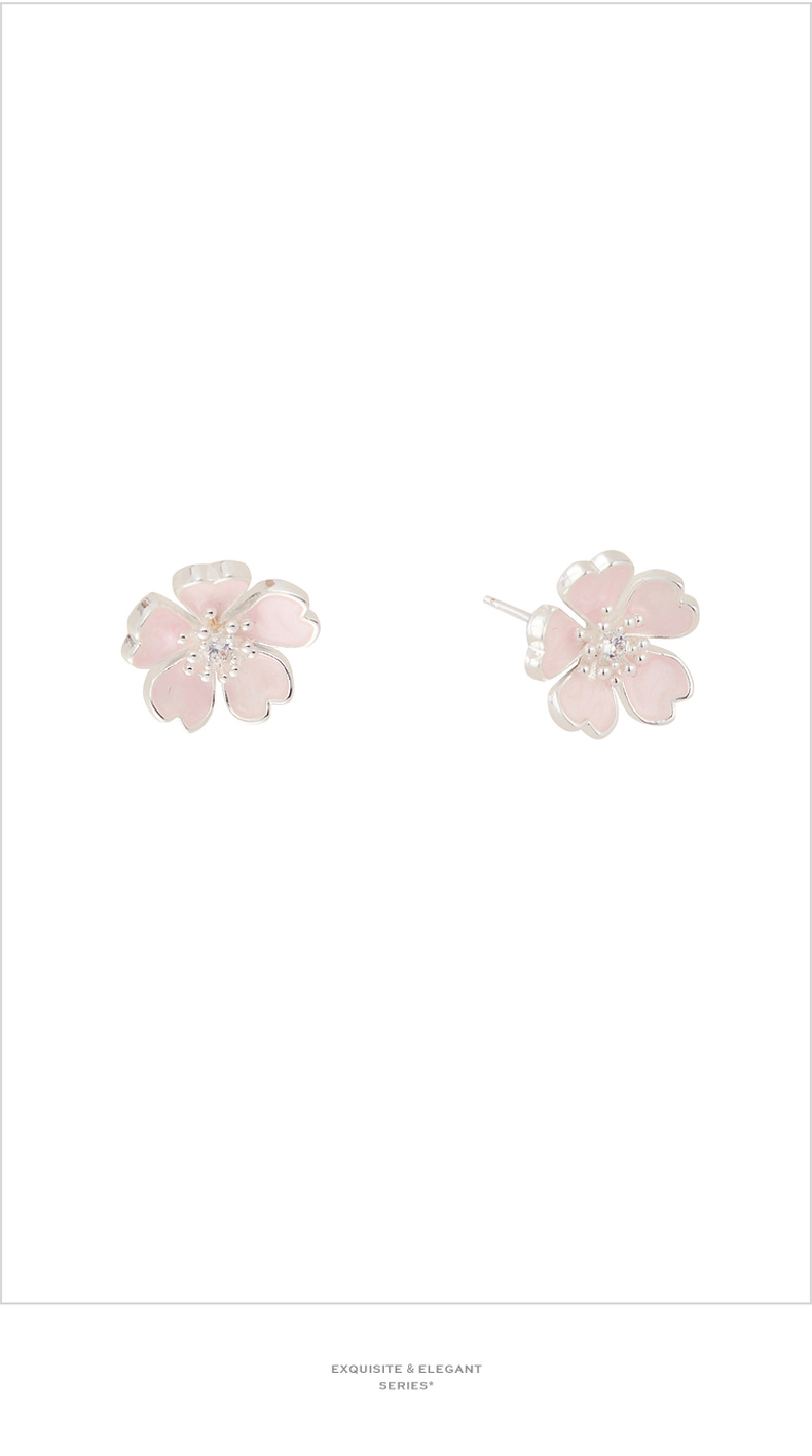 三彩2026新款法式甜美画漆五瓣樱花粉耳钉s925银针通勤约会女
