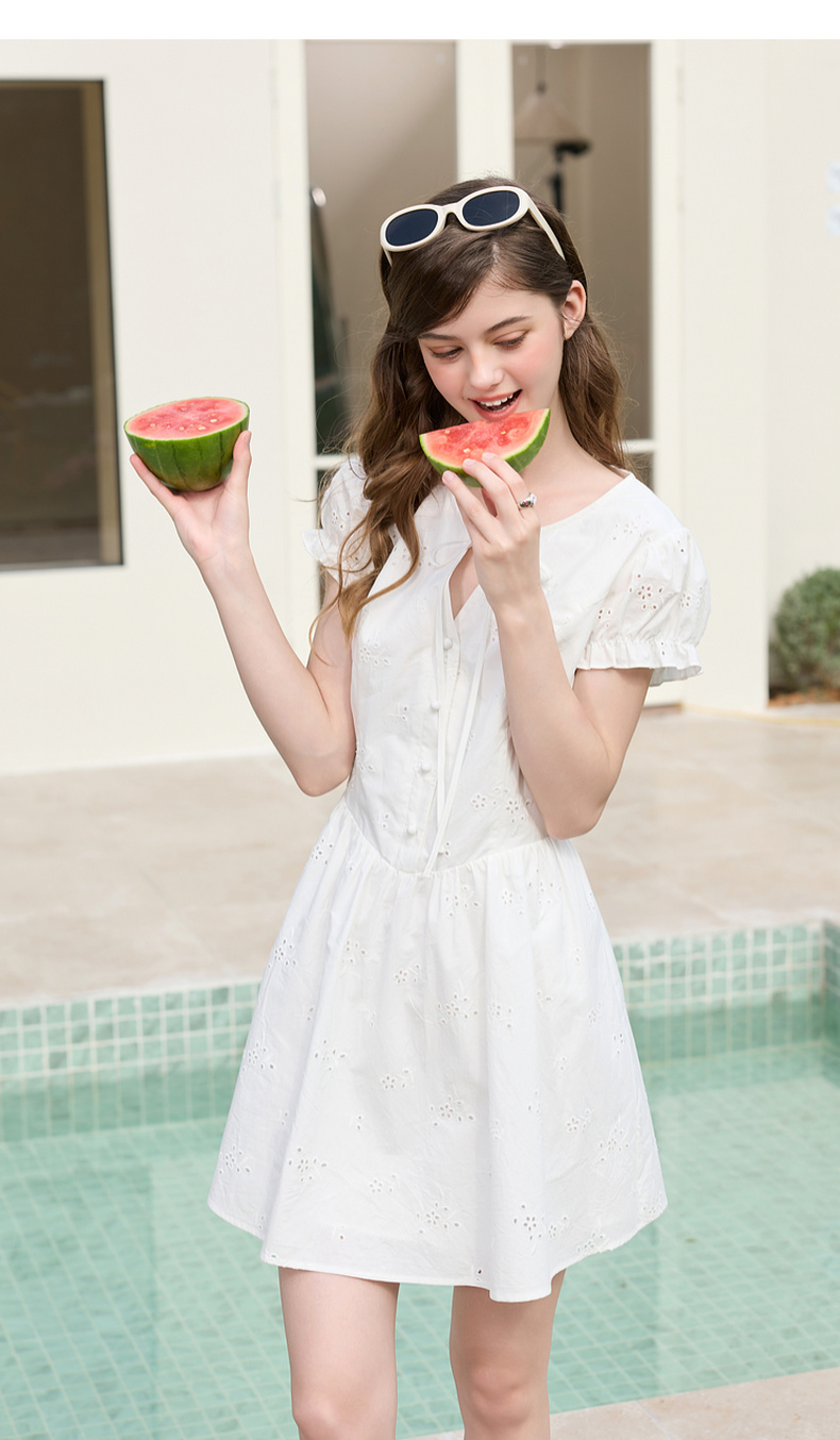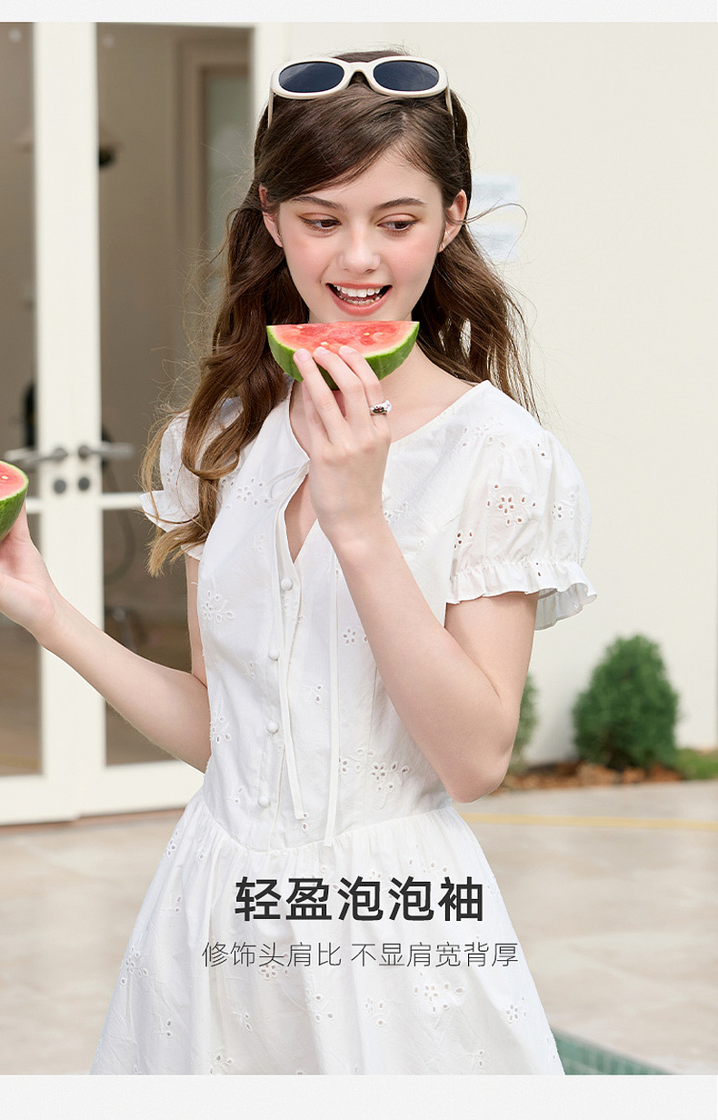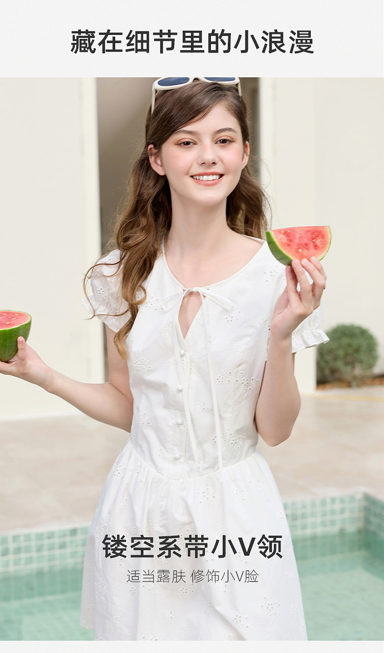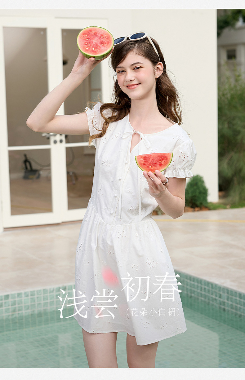 【100棉】三彩独醒2026春季新款刺绣连衣裙收腰A字裙短裙F