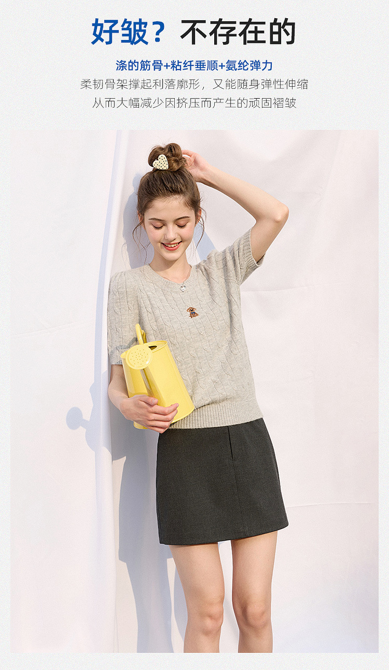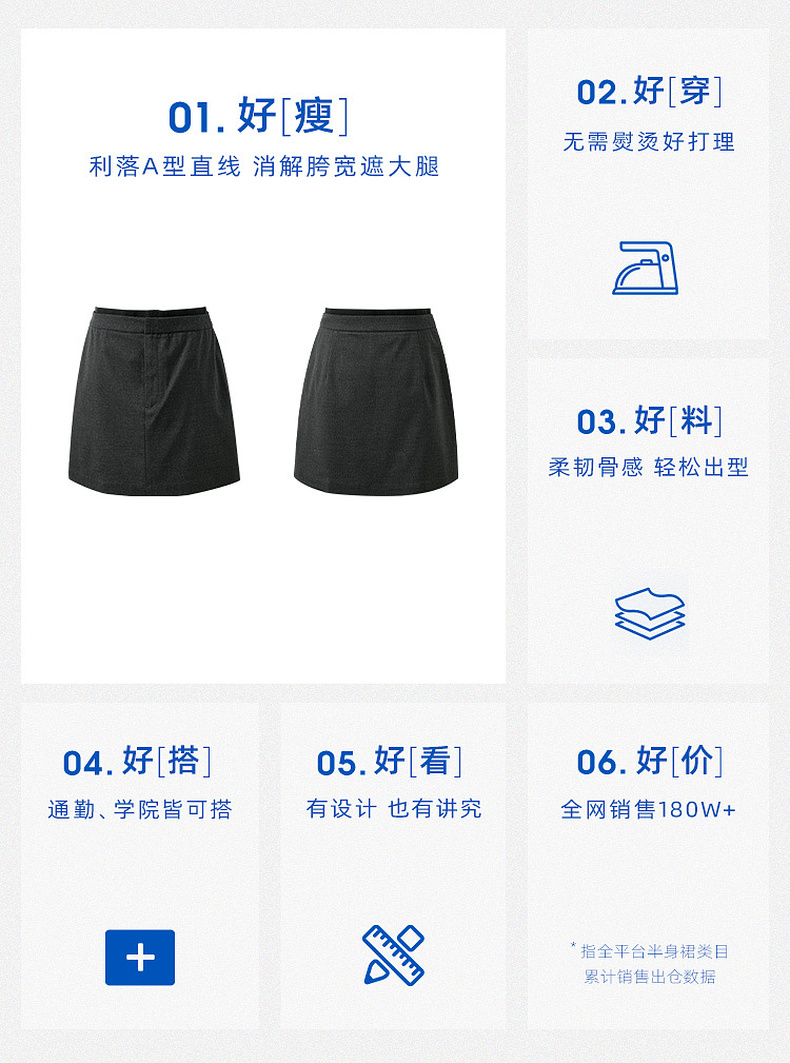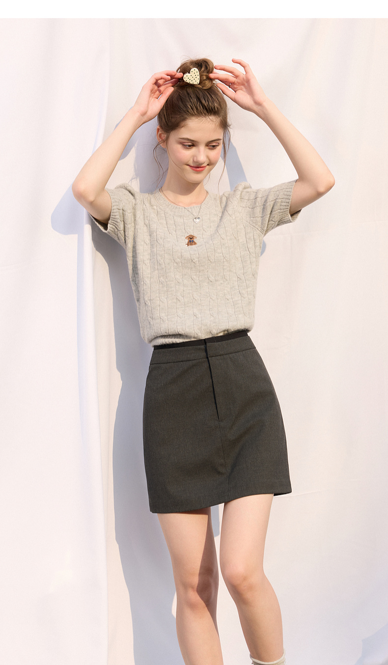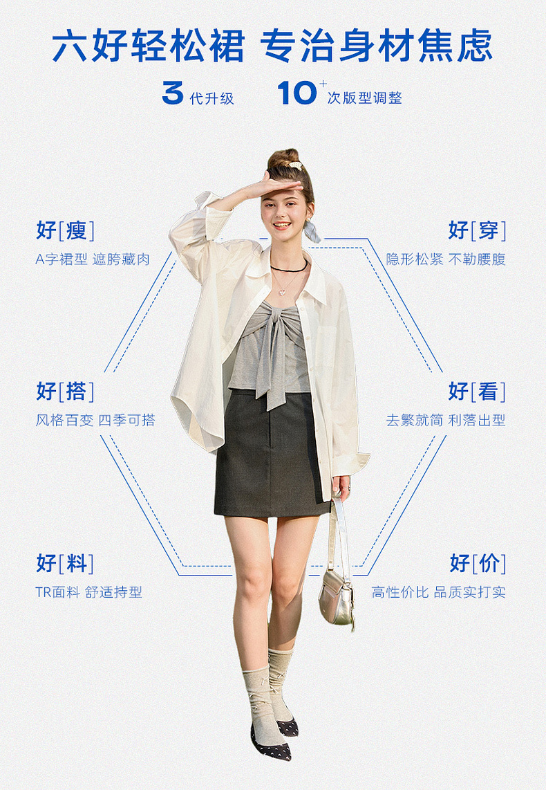 三彩2026春季新款修身高腰半身裙简约A字裙短裙通勤显瘦气质Z