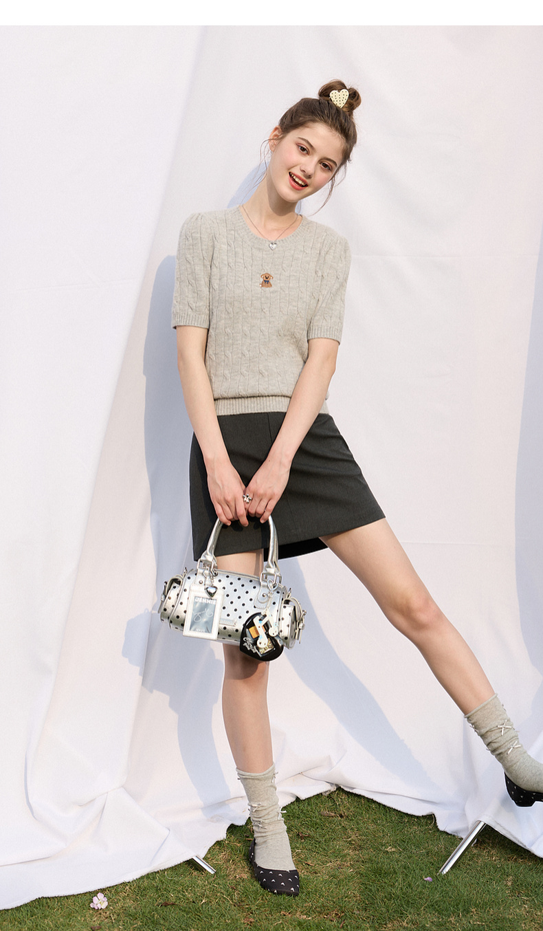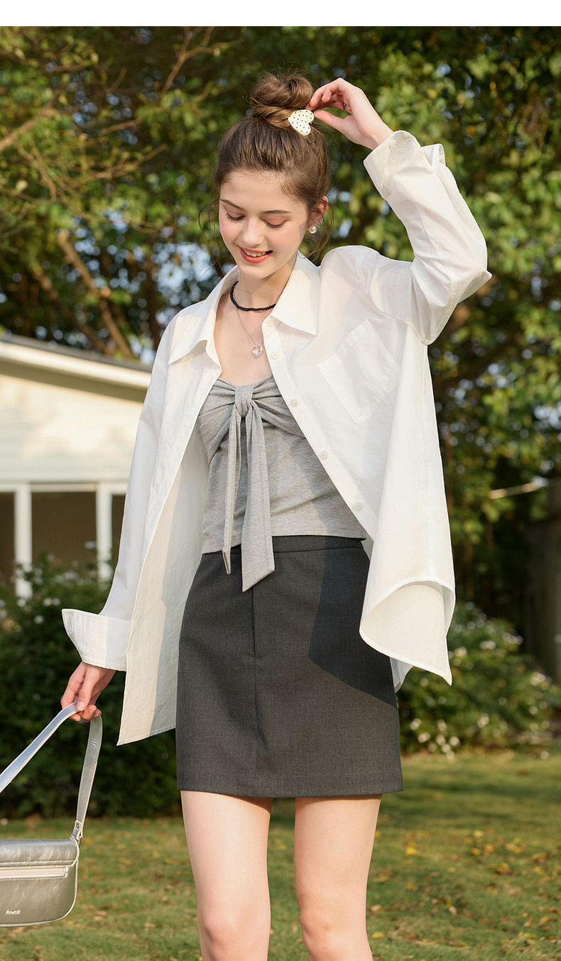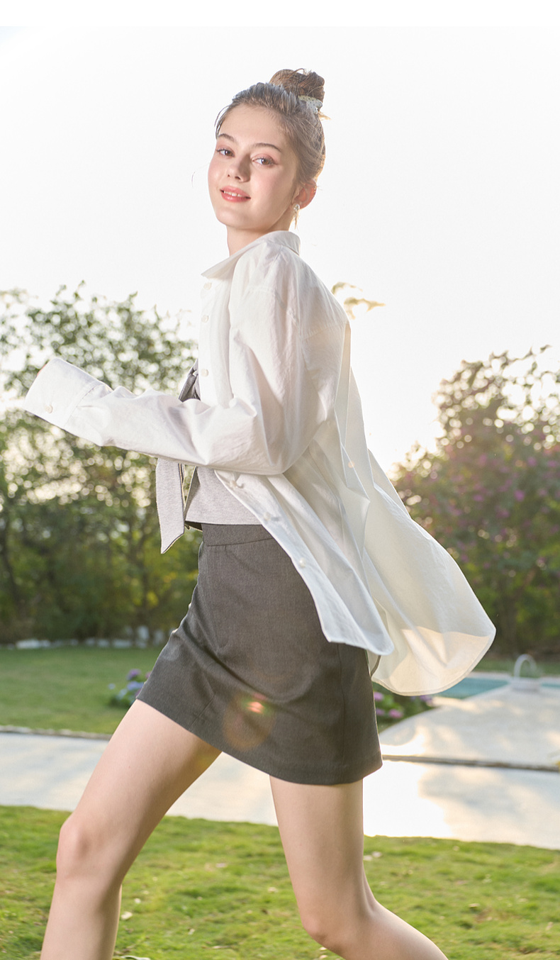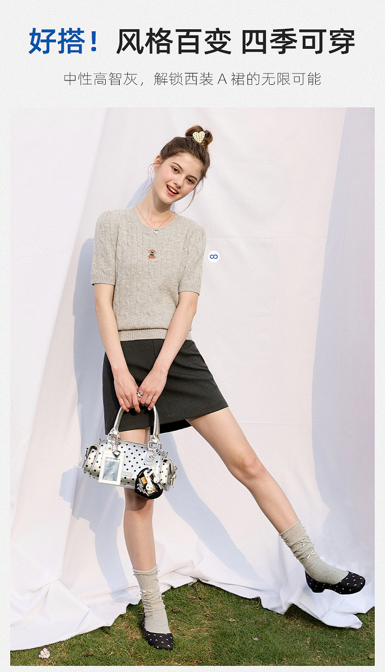 三彩2026春季新款修身高腰半身裙简约A字裙短裙通勤显瘦气质Z