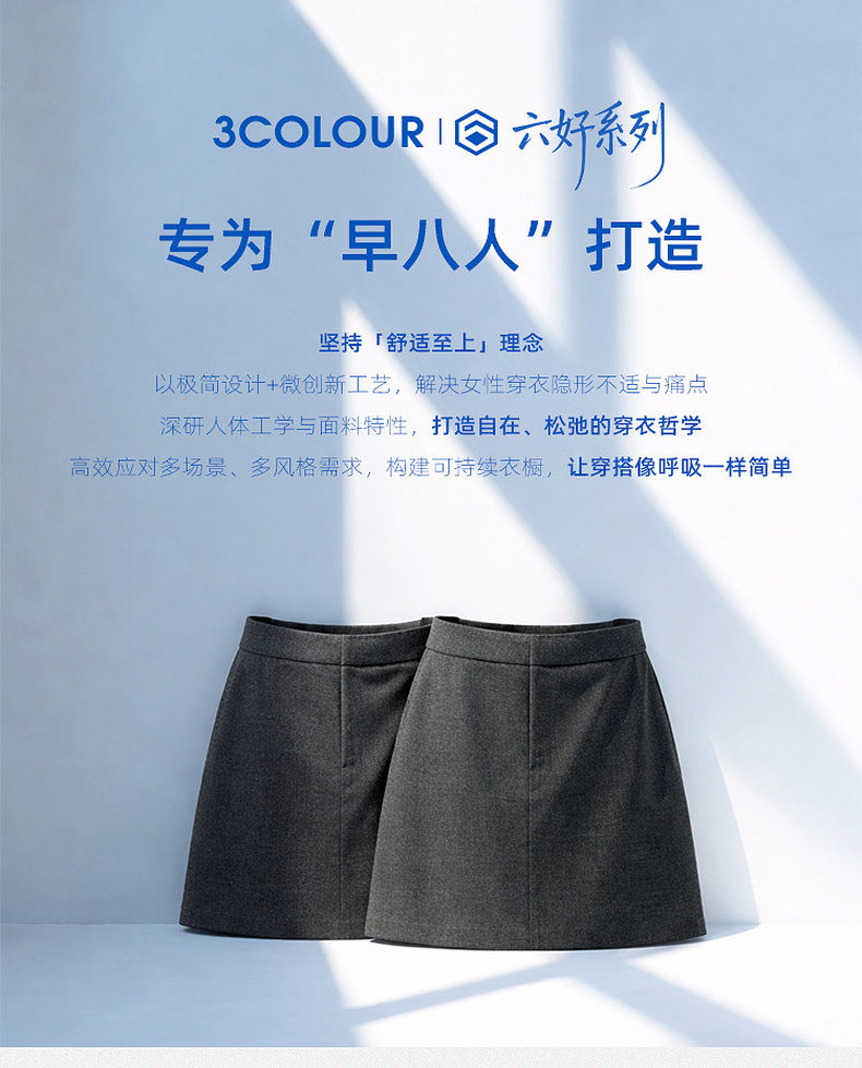 - 3COLOUR,一直致力于探索自我与时尚审美,用穿衣哲学折射生活主张,在流动中探寻恒久。