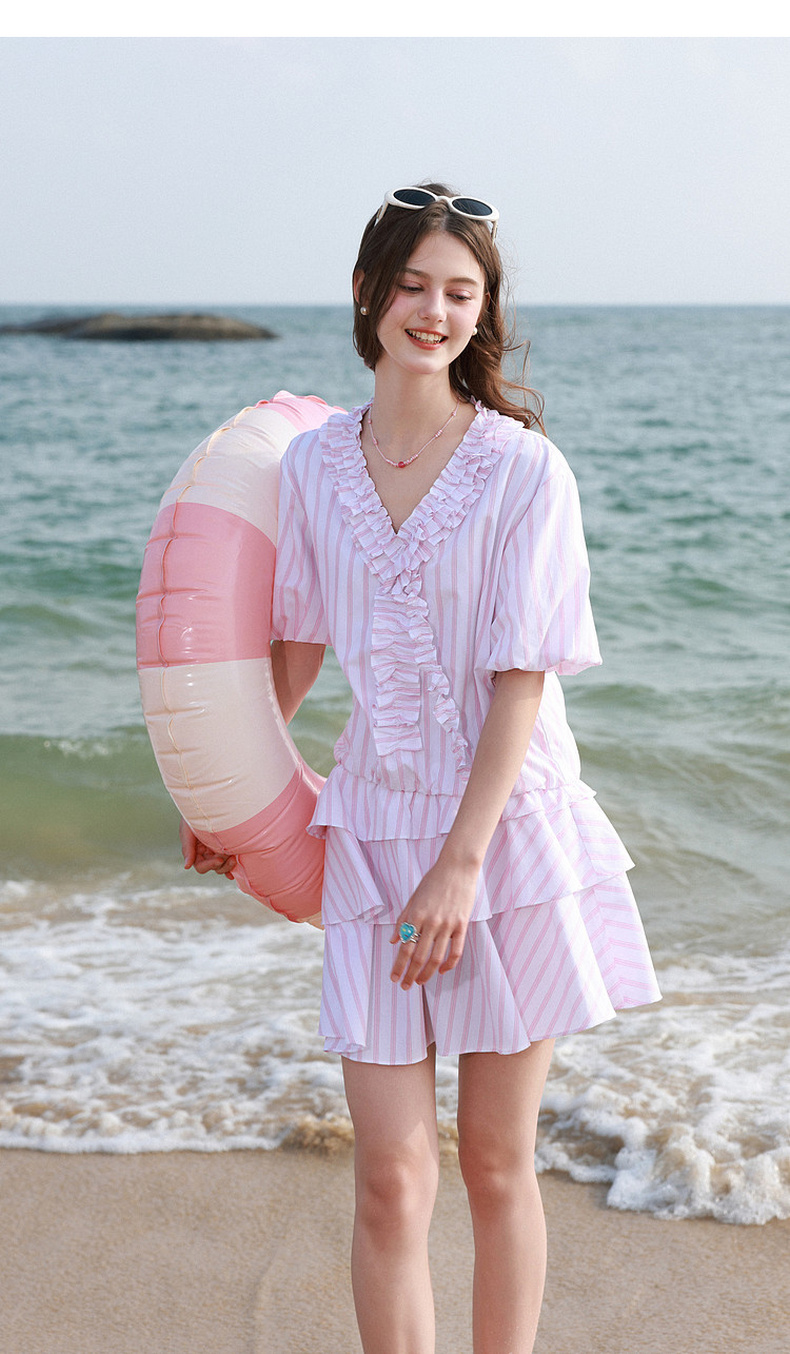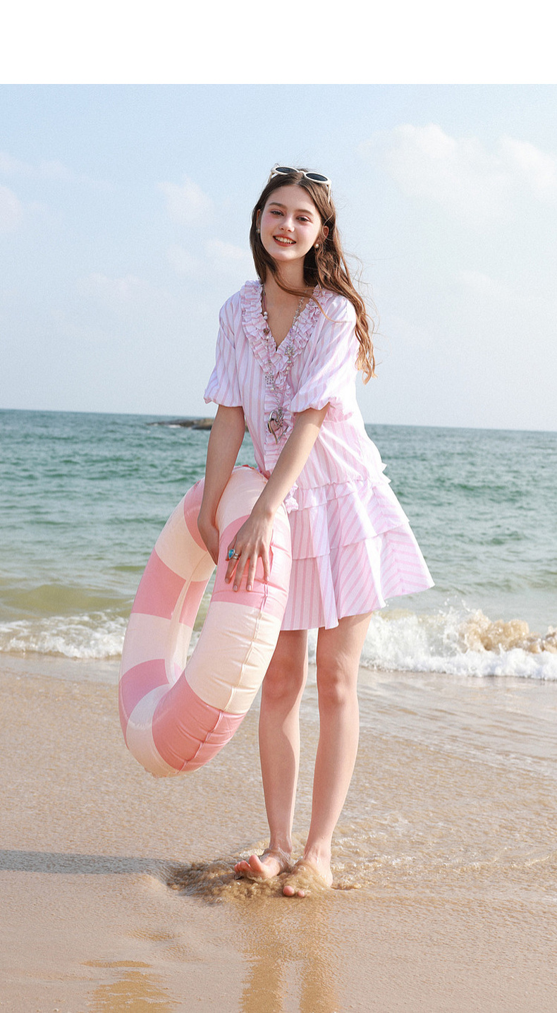 【100棉】三彩独醒2026夏季新款连衣裙小个子短裙条纹A字裙F