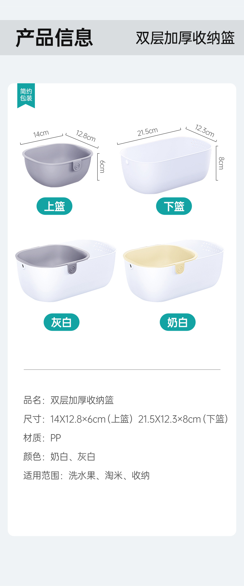【2套】MAYNOS双层加厚中号水果收纳篮