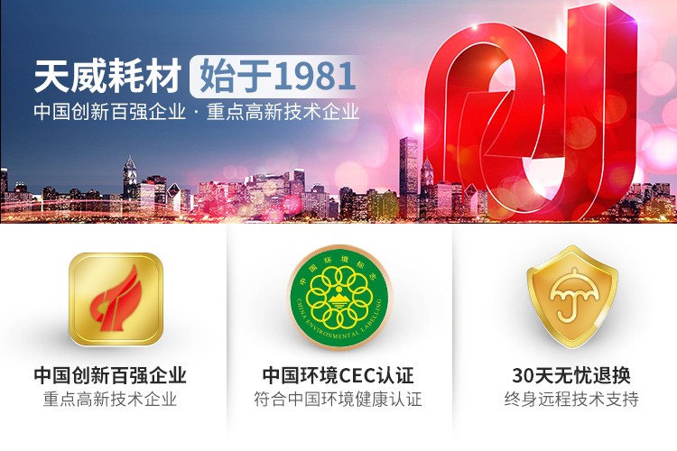 - 天威耗材始于1981年,主营硒鼓、墨盒、色带等办公耗材商品,中国知名通用打印耗材倡导者和生产商。