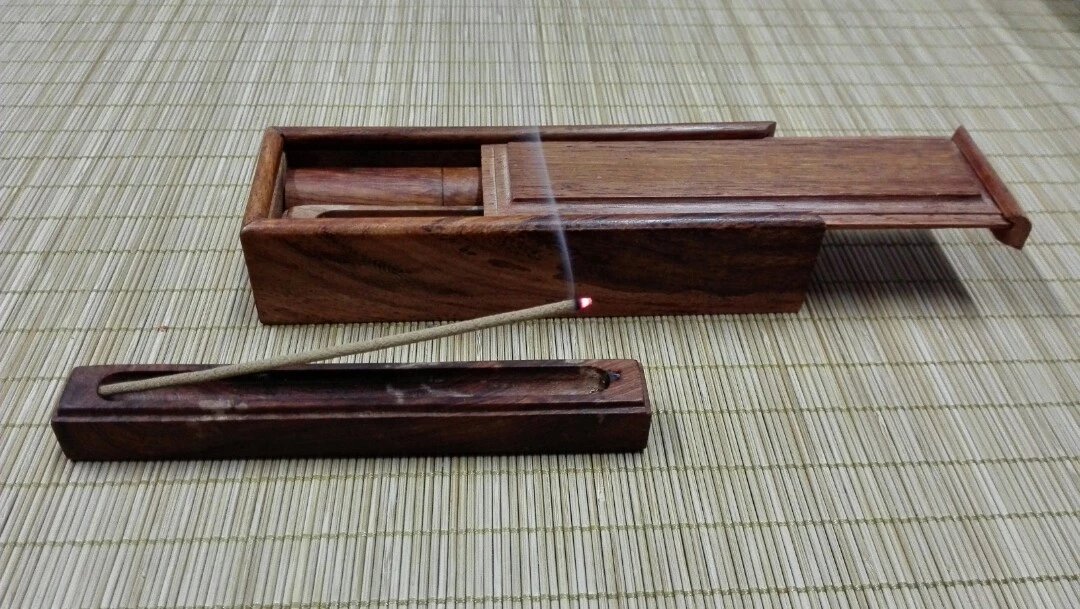 短线香便携装全套。配合菊斋良品 • 百花线香使用。 含一个香筒(可装2-3克香)、线香(2-3克)一个卧香炉、一个木盒。 (已售完)