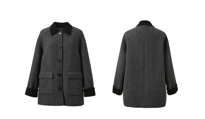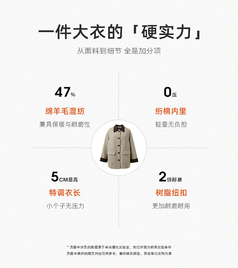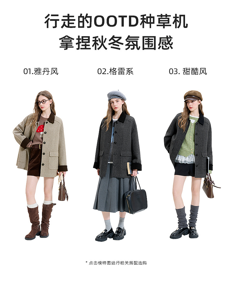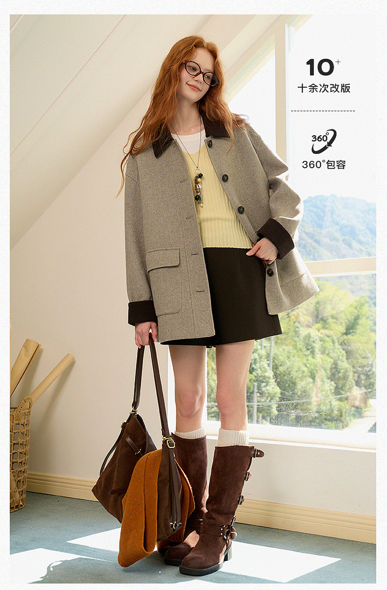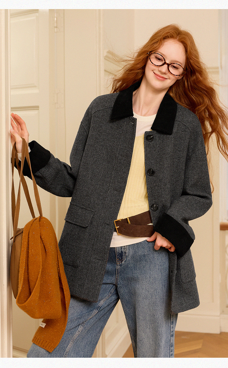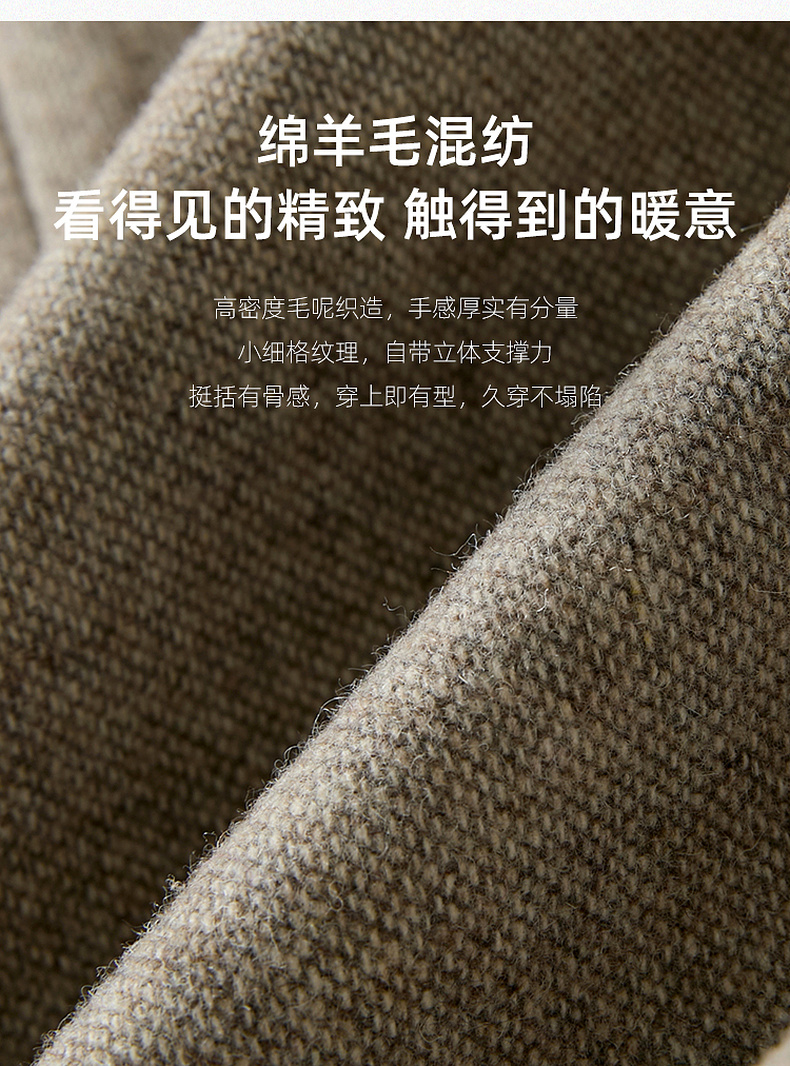 【绵羊毛】三彩2025冬季新款巴恩风毛呢外套宽松夹棉大衣中长M