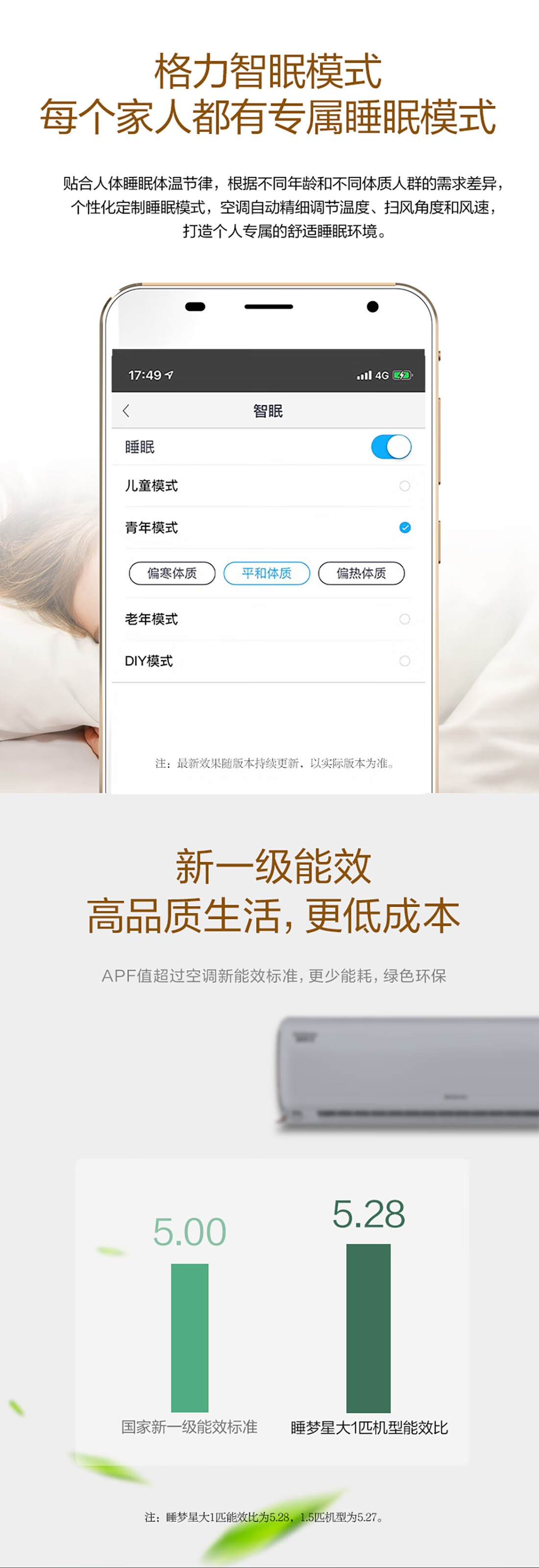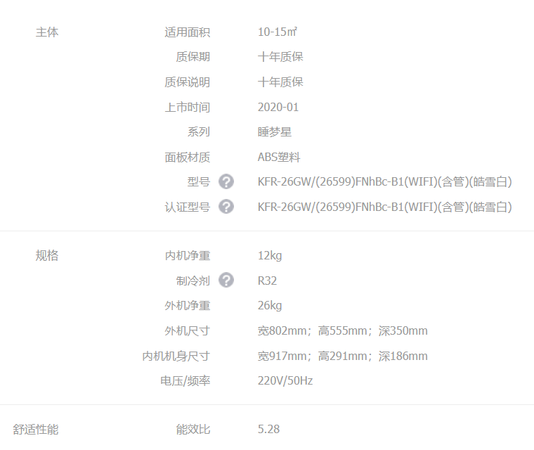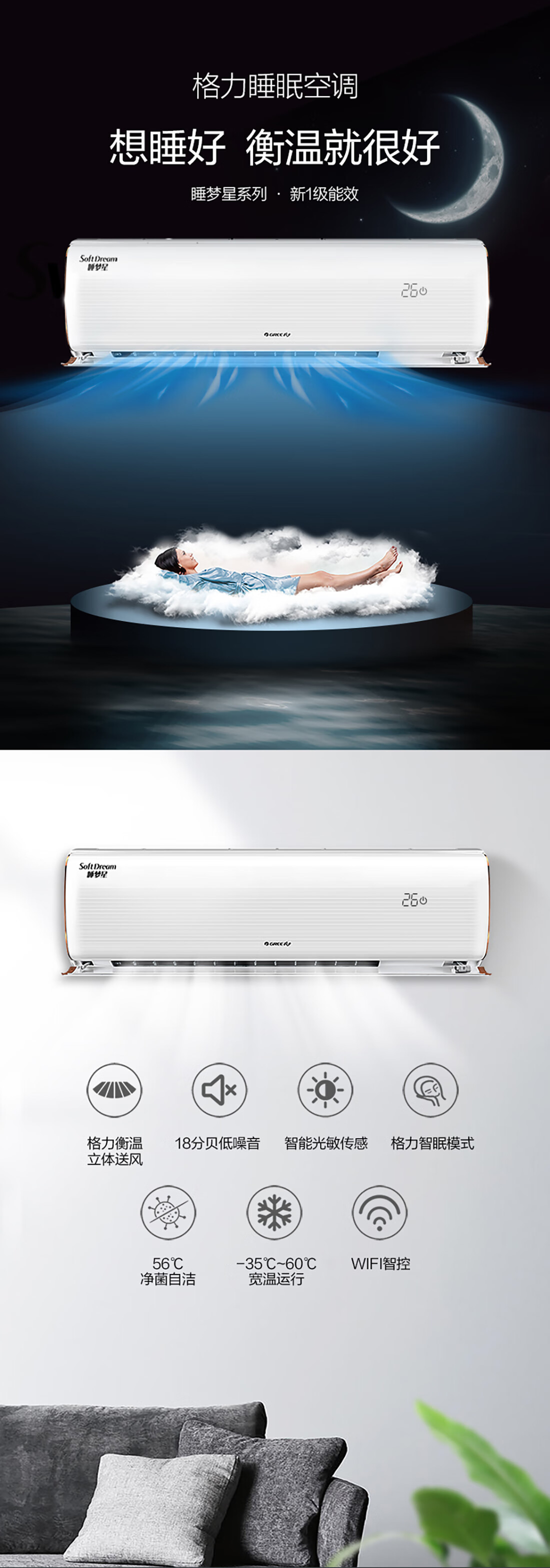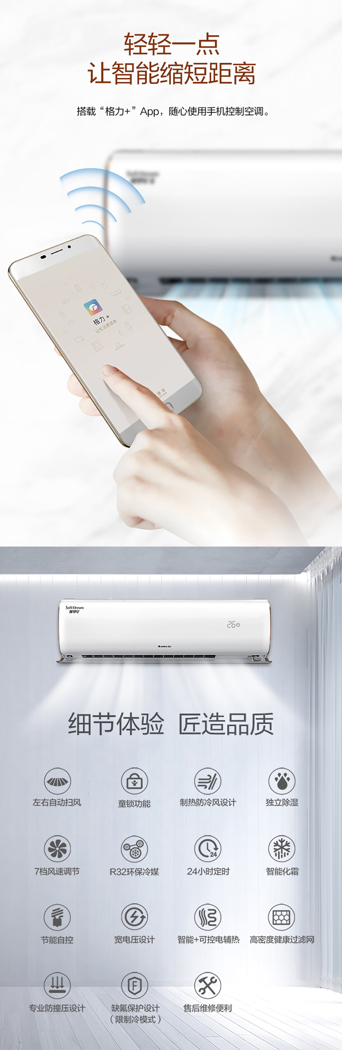 格力/空调/KFR-26GW/(26599)FNhBc-B1(WIFI)(含管)(皓雪白)/睡梦星 大1匹 新一级能效 变频冷暖 挂机空调