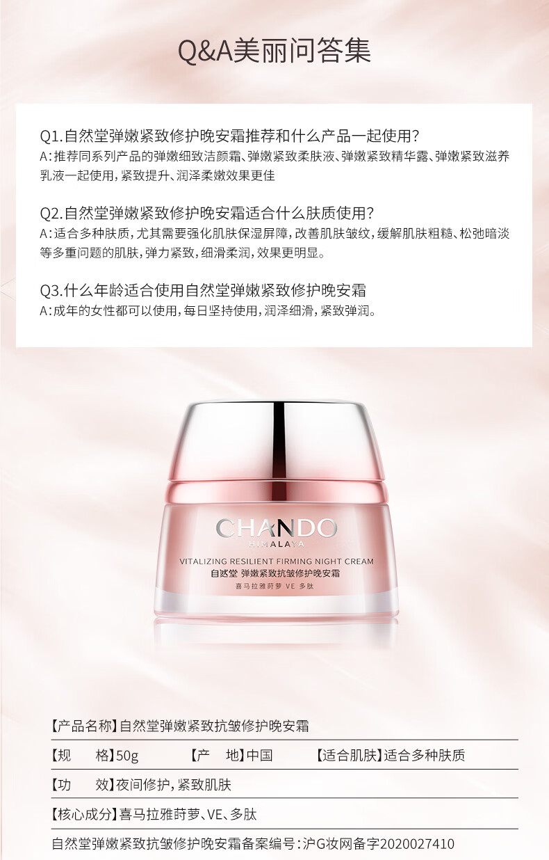 自然堂弹嫩紧致抗皱修护晚安霜50g