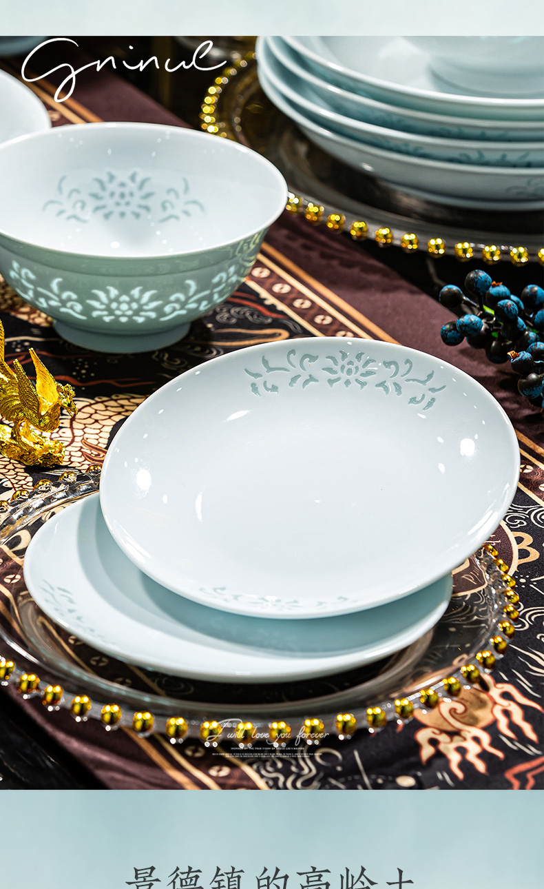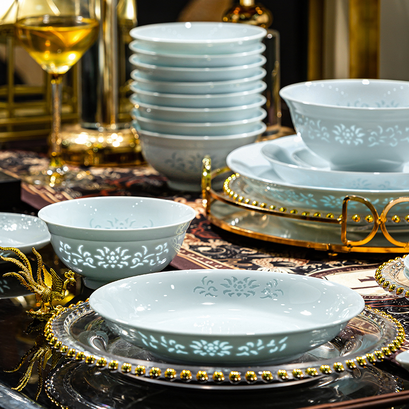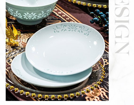 汉茗 青釉缠枝莲玲珑8英寸深盘 1个
