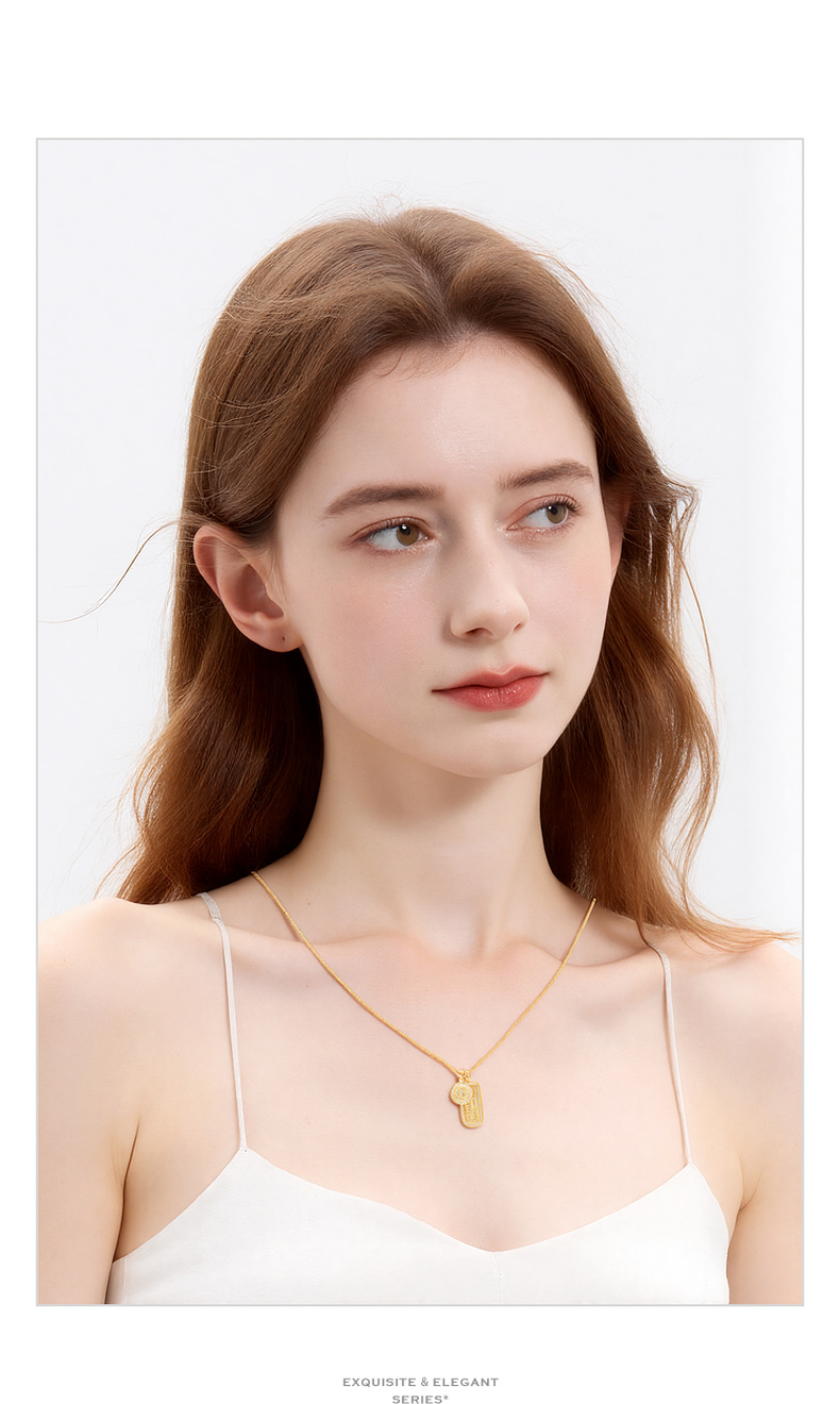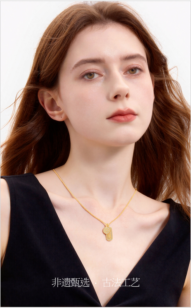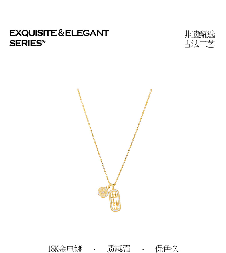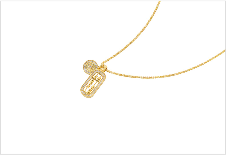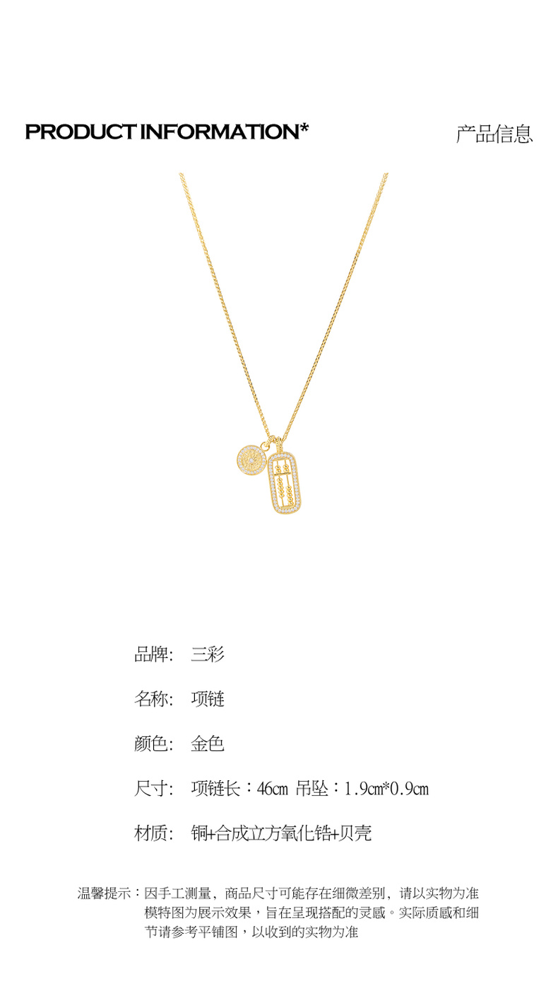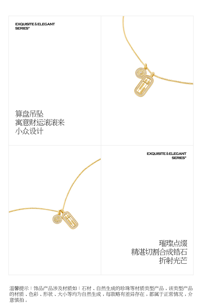 三彩2026新款圆牌算盘造型吊坠镀金项链国风轻奢锆石吉祥寓意女