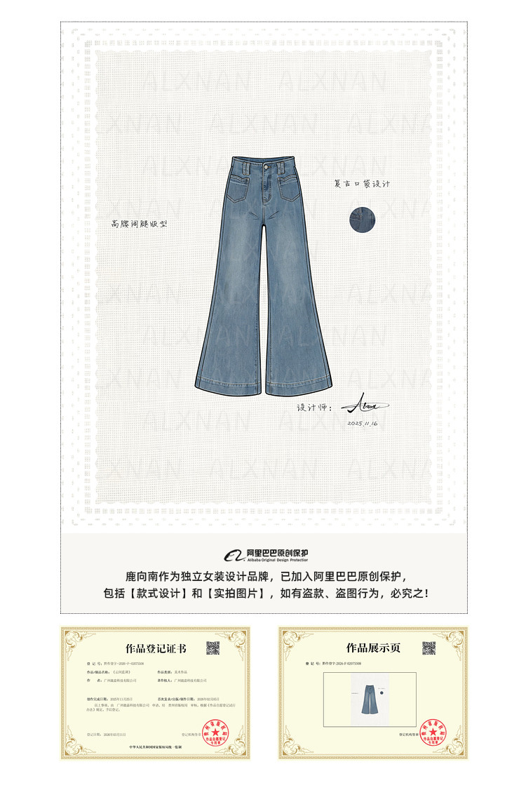 鹿向南「花畔闲步」牛仔阔腿裤女2026新款夏季复古风超火宽松裤子