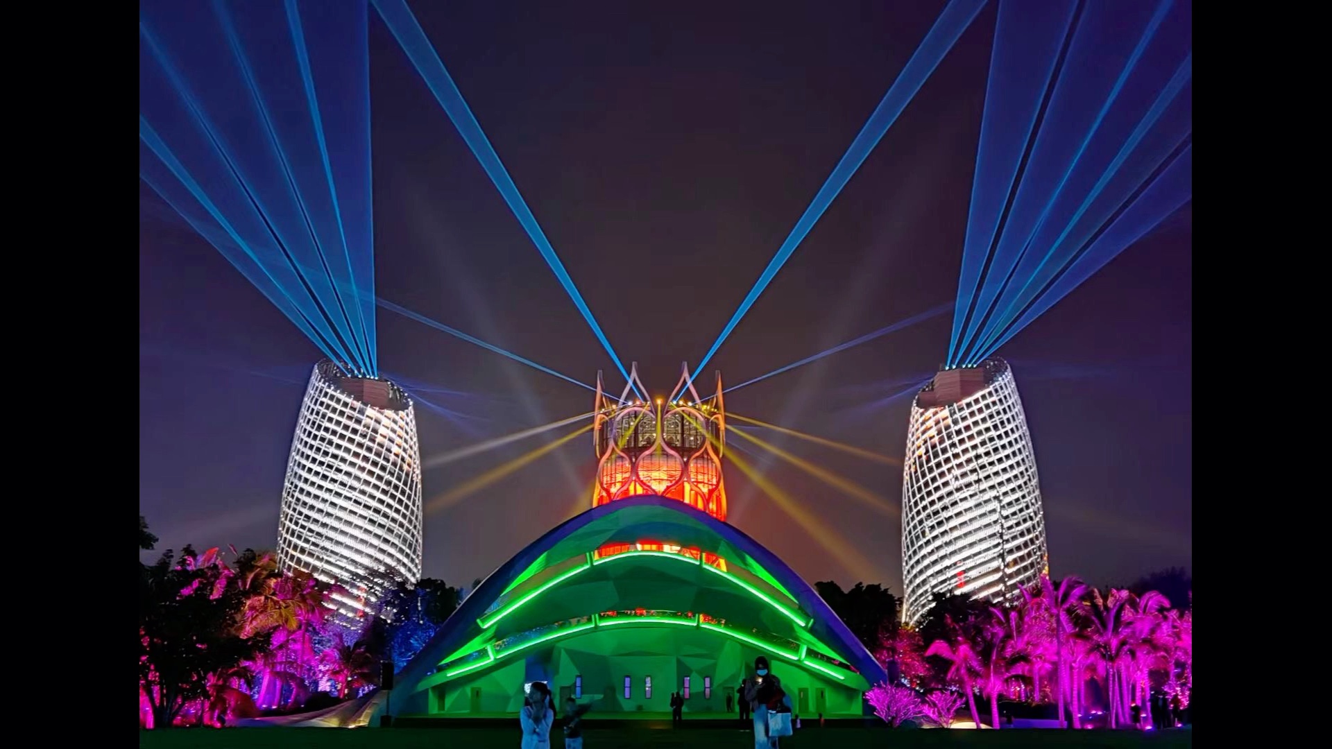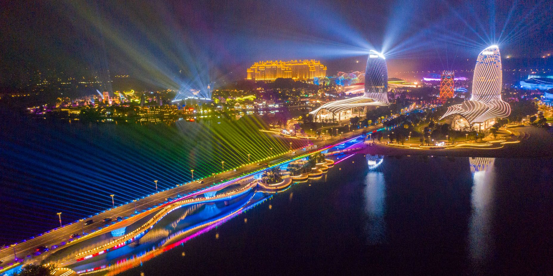 【灯光秀和烟花表演】晚上8:30在人工沙滩有灯光秀,最佳观赏点在婚礼庄园。