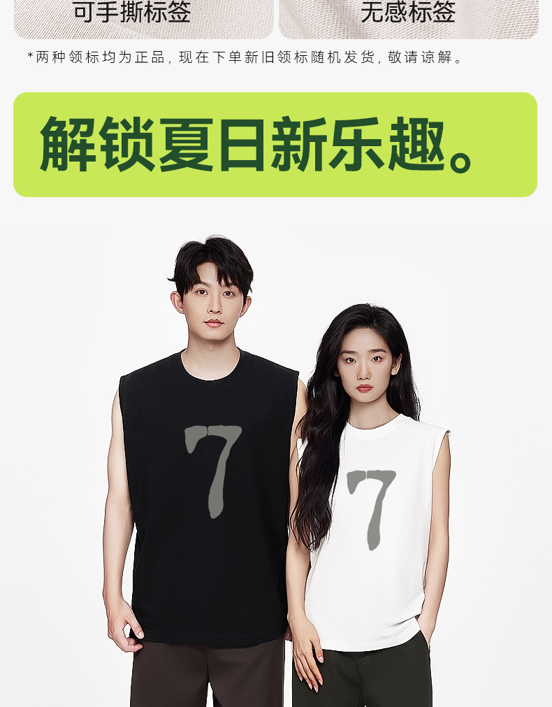 「棉的美学」清爽凉感背心男款运动印花款夏季健身休闲无袖T恤