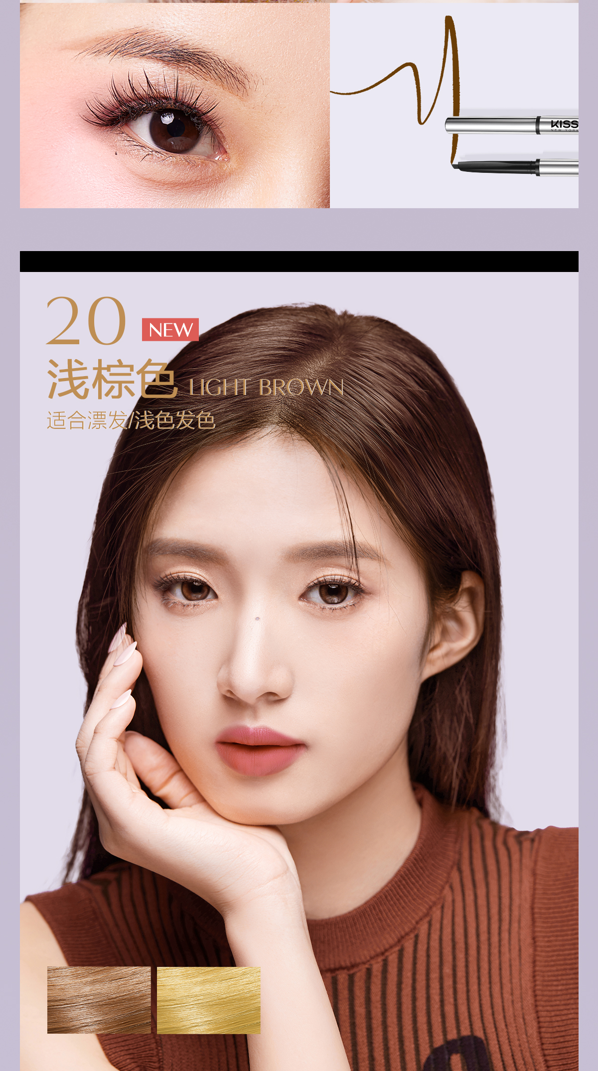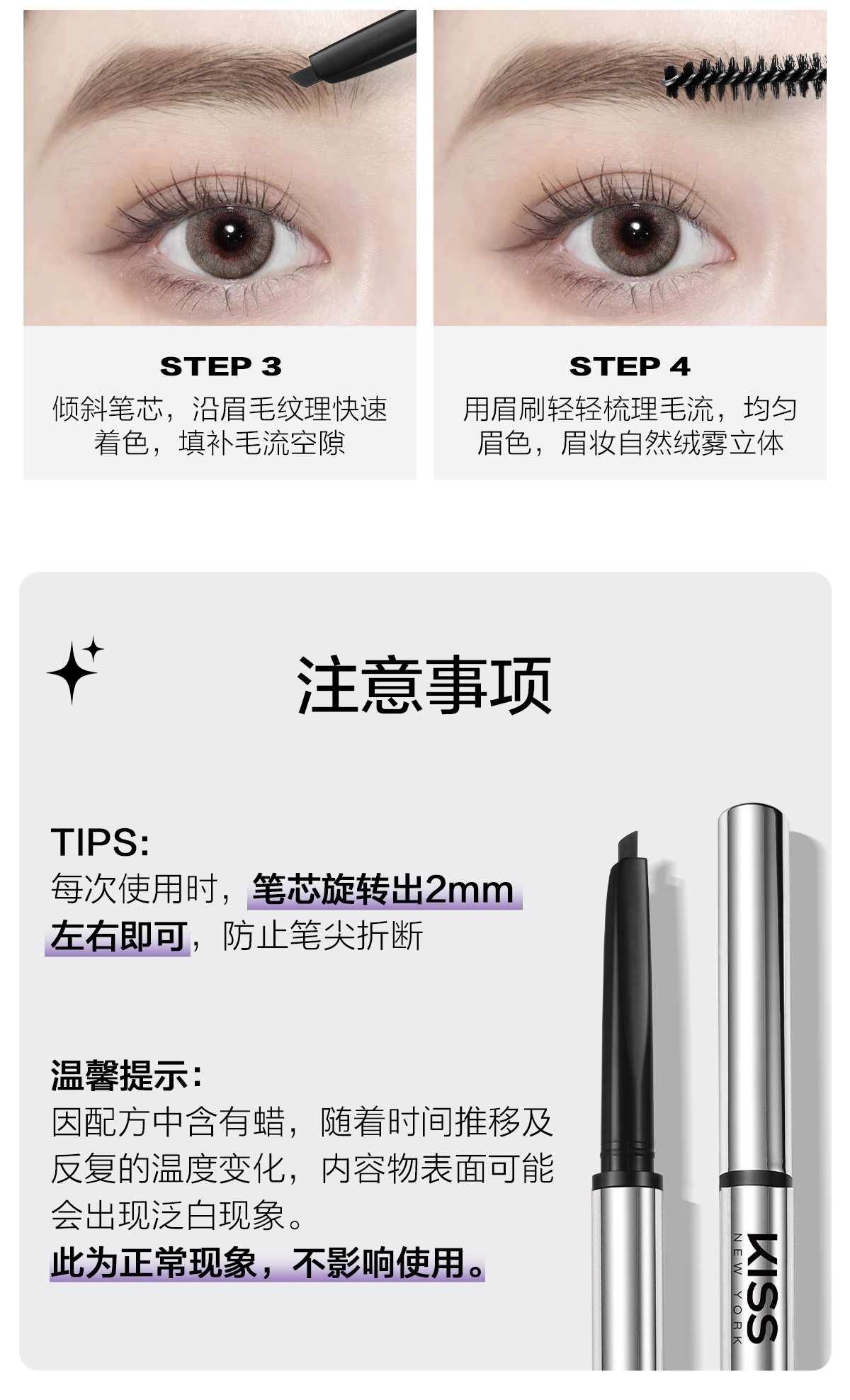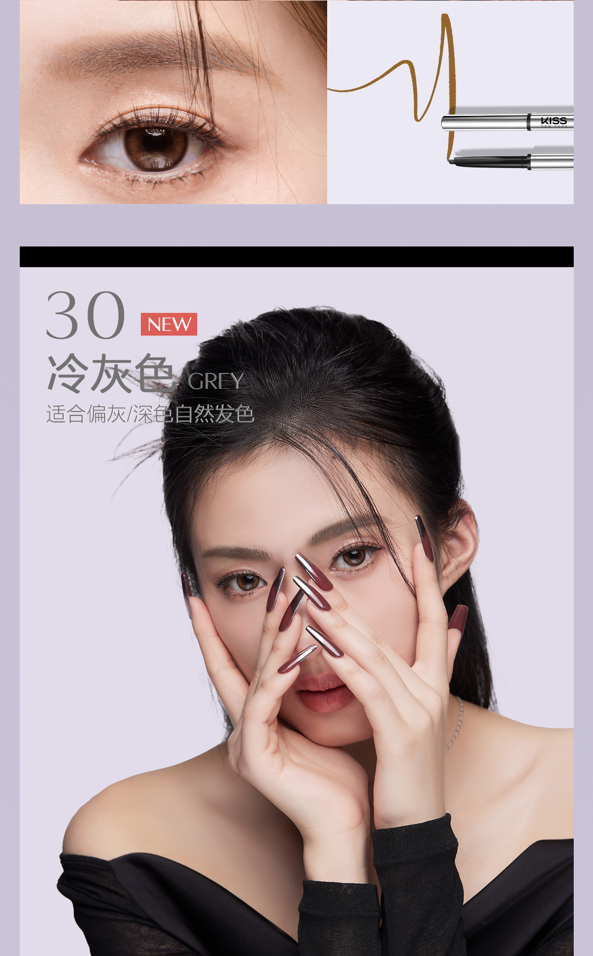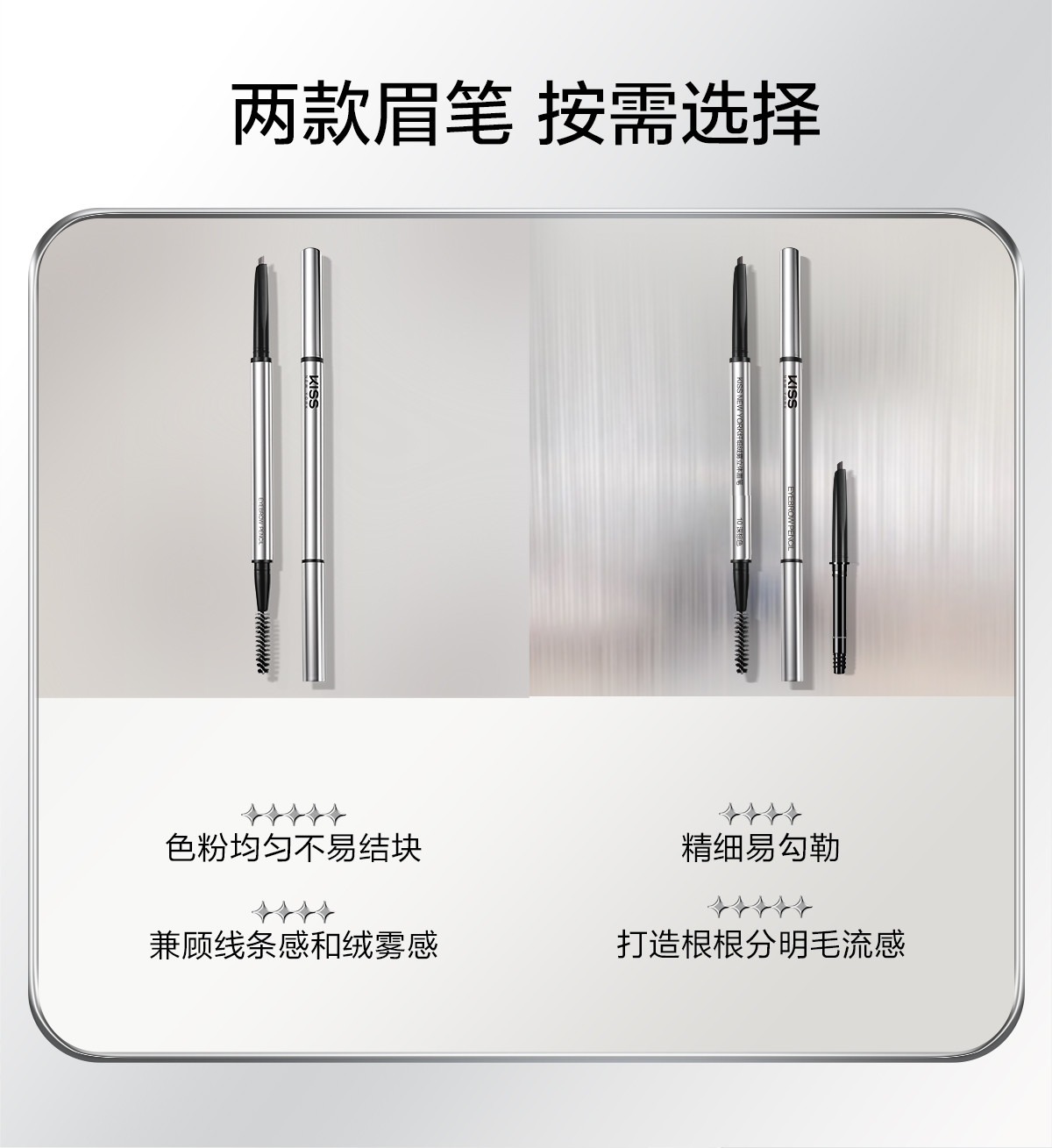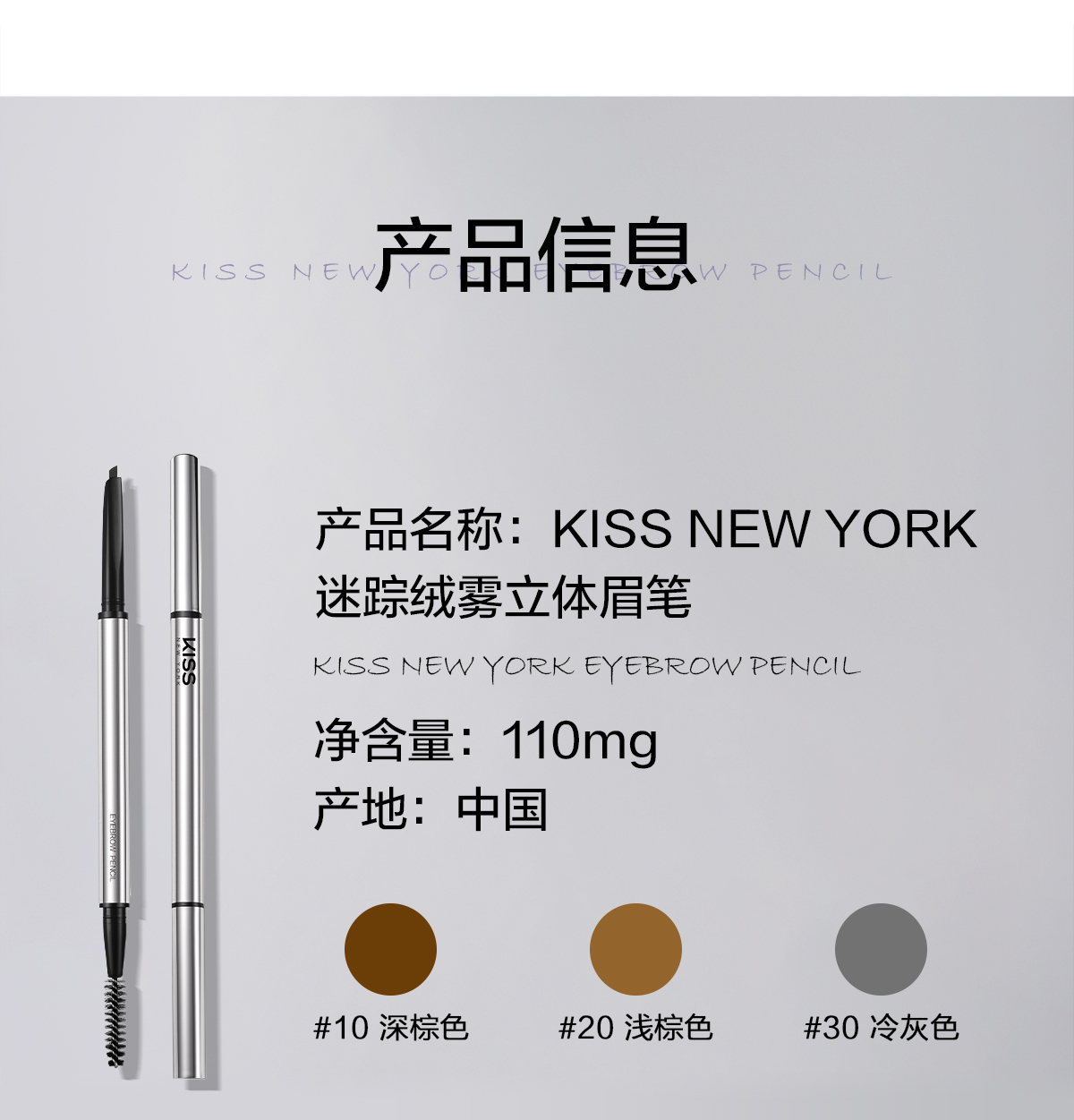 KISS NEW YORK纤细绒雾立体眉笔10深棕色/30冷灰色_PX