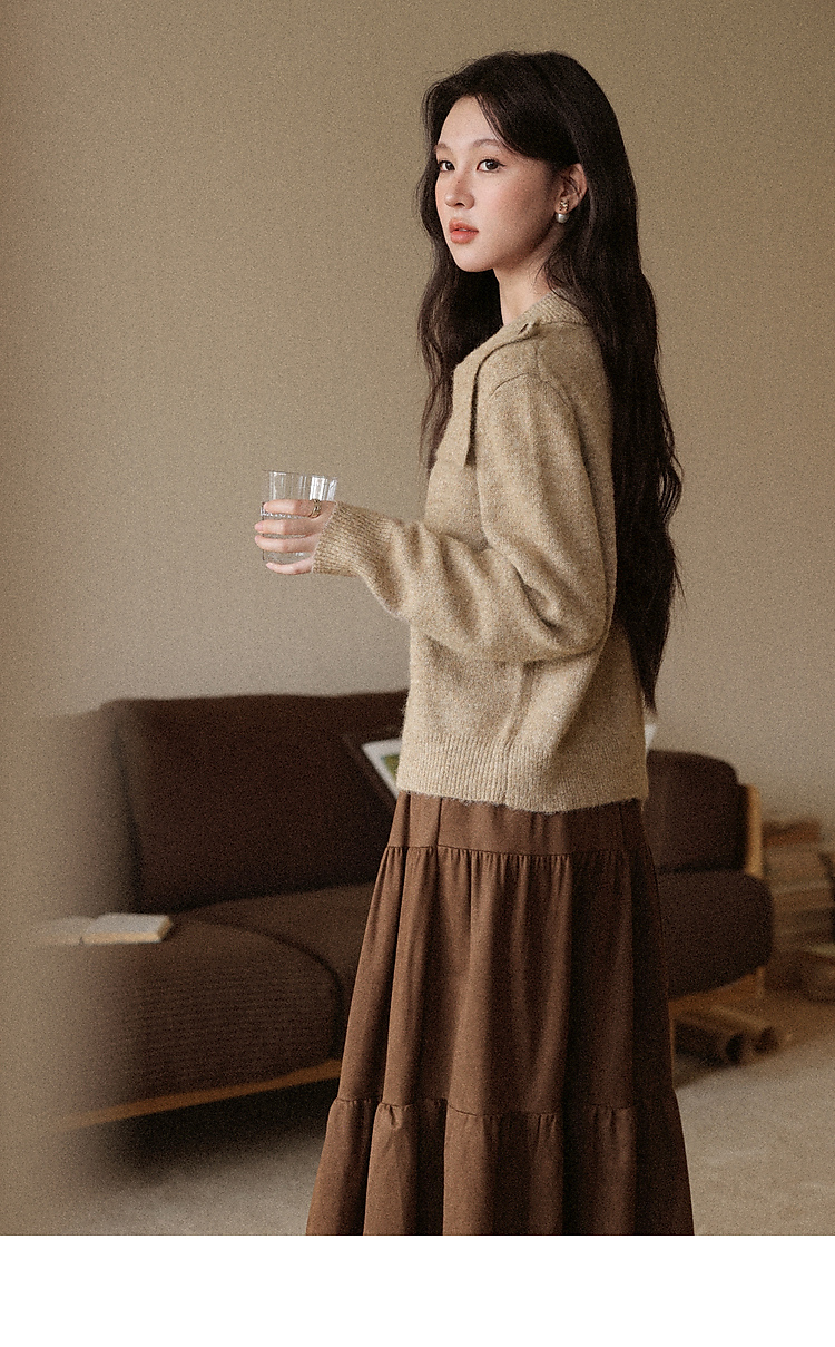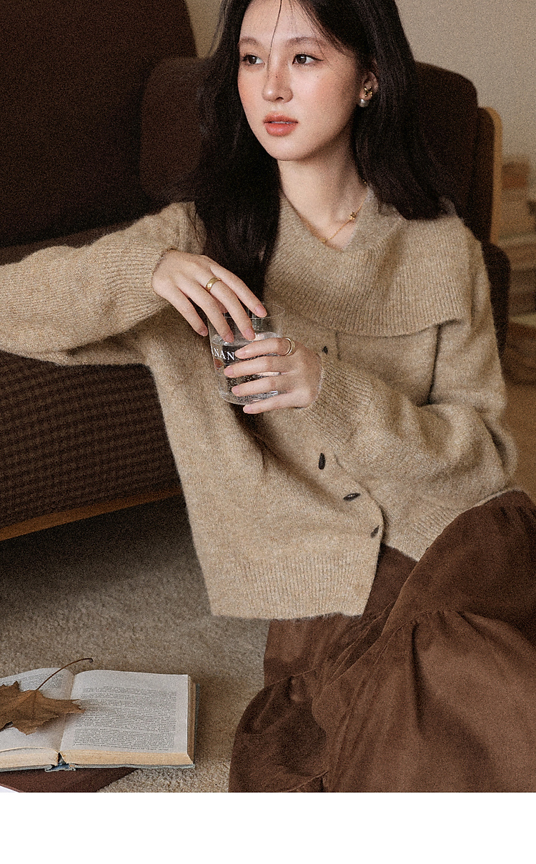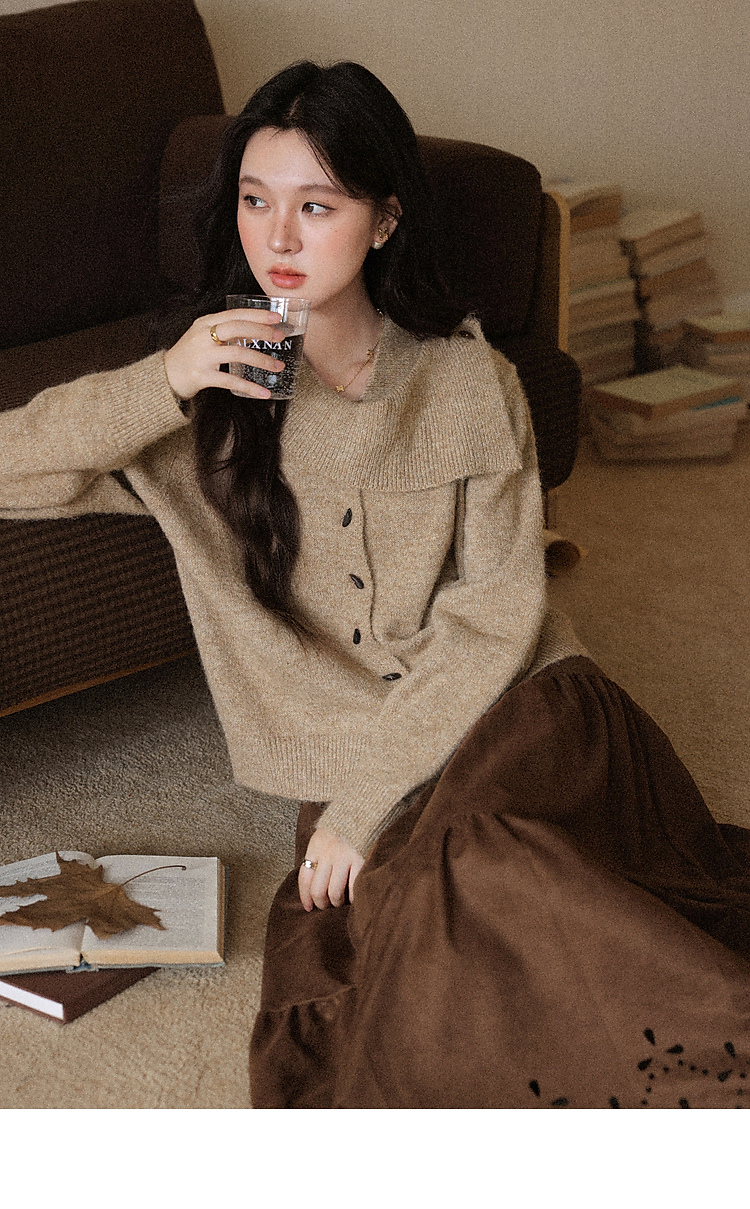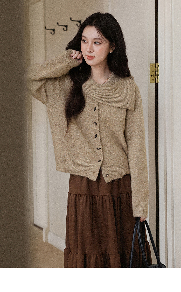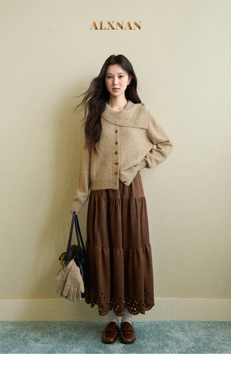 鹿向南「星辰絮语」慵懒风设计感咖色长袖毛衣女初秋宽松显瘦上衣
