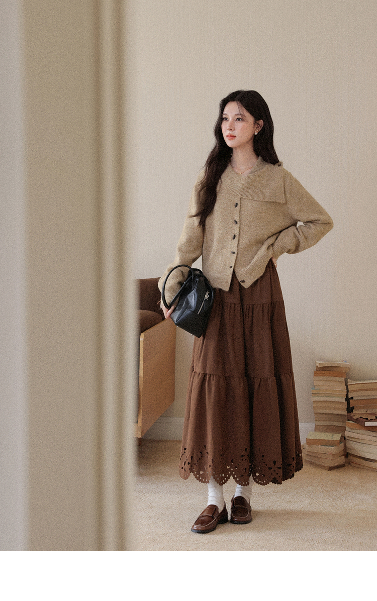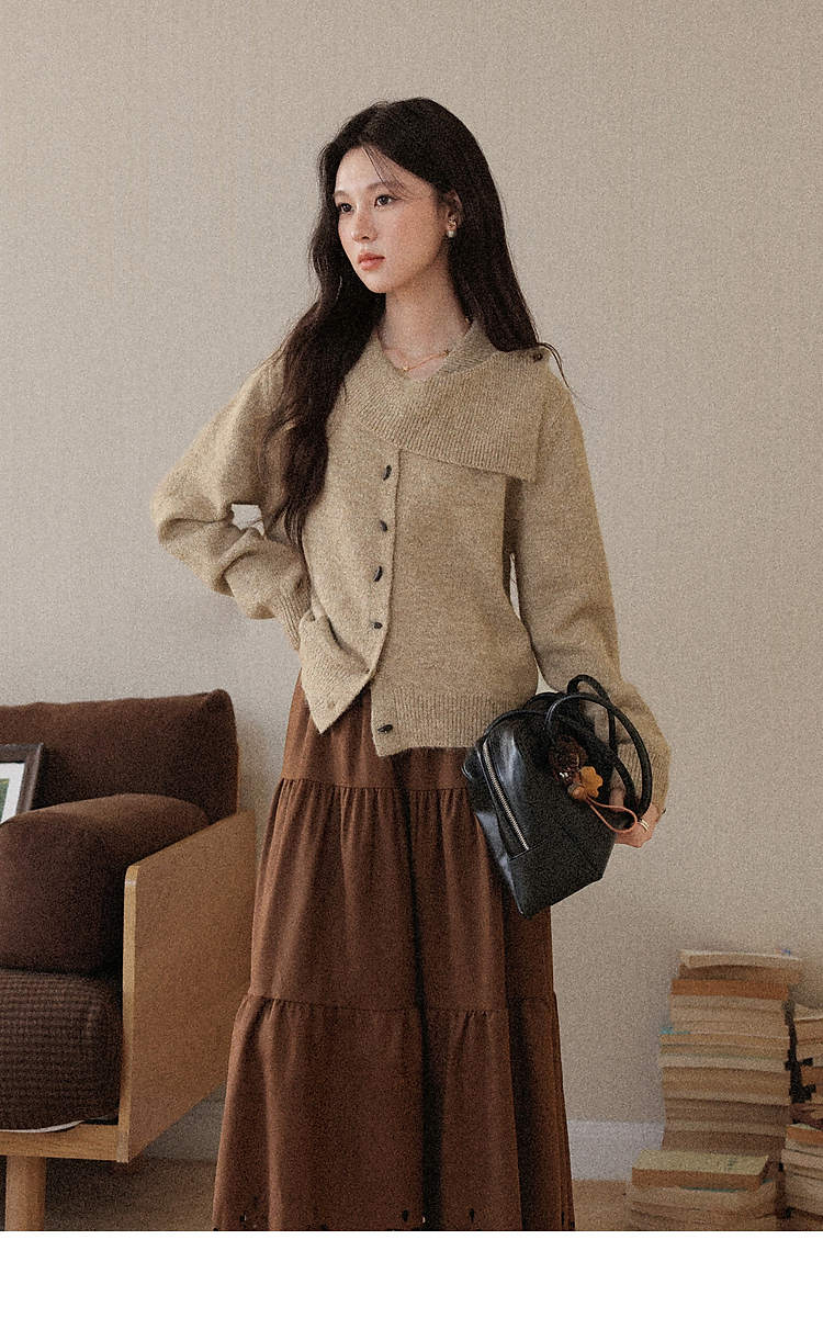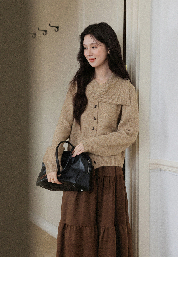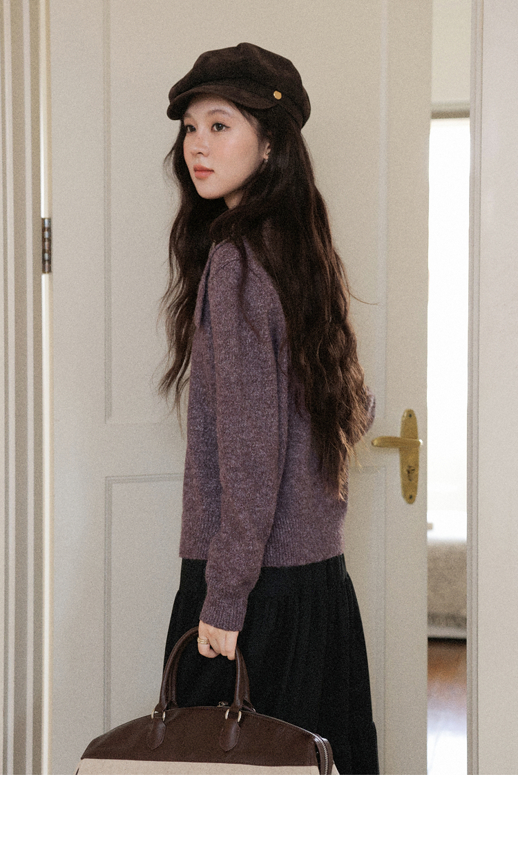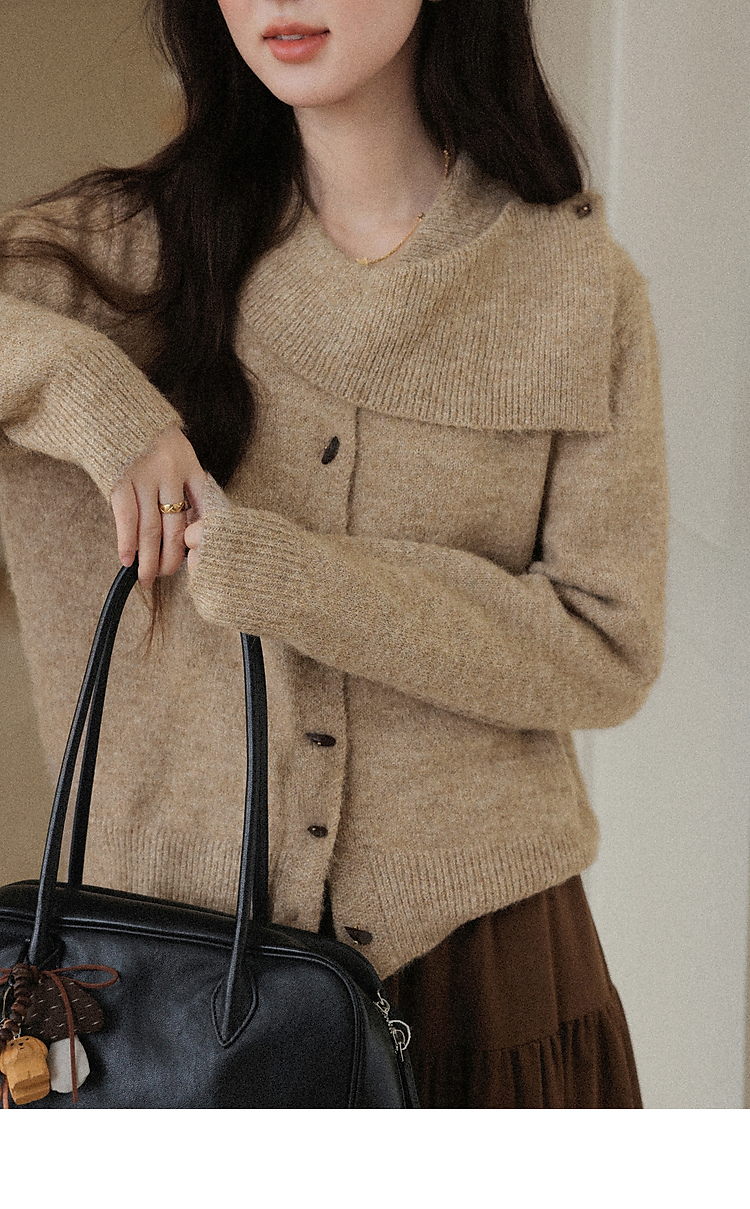 鹿向南「星辰絮语」慵懒风设计感咖色长袖毛衣女初秋宽松显瘦上衣