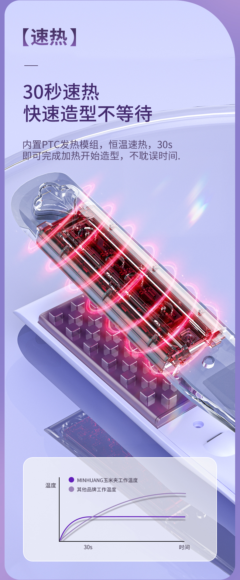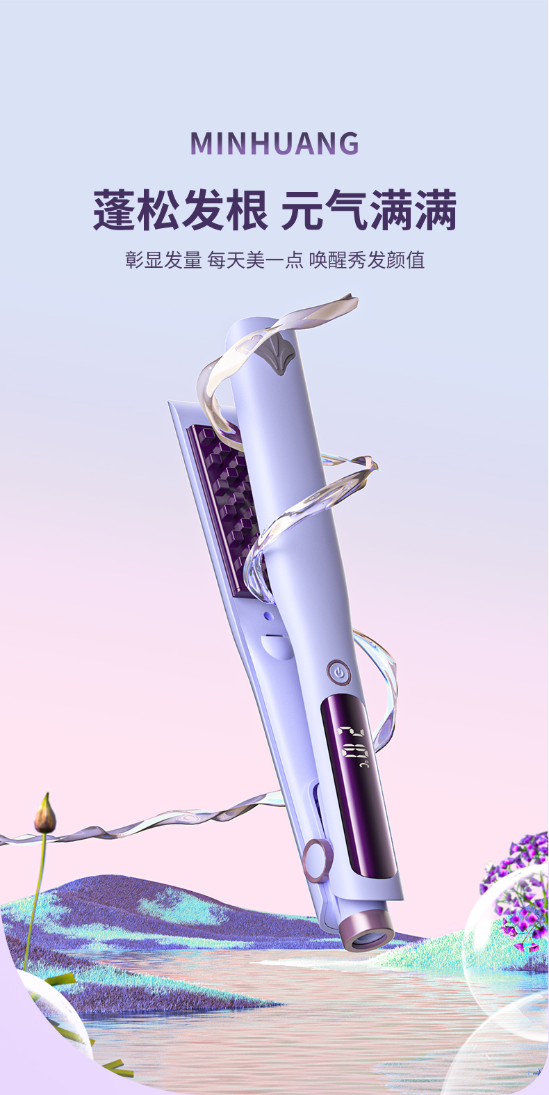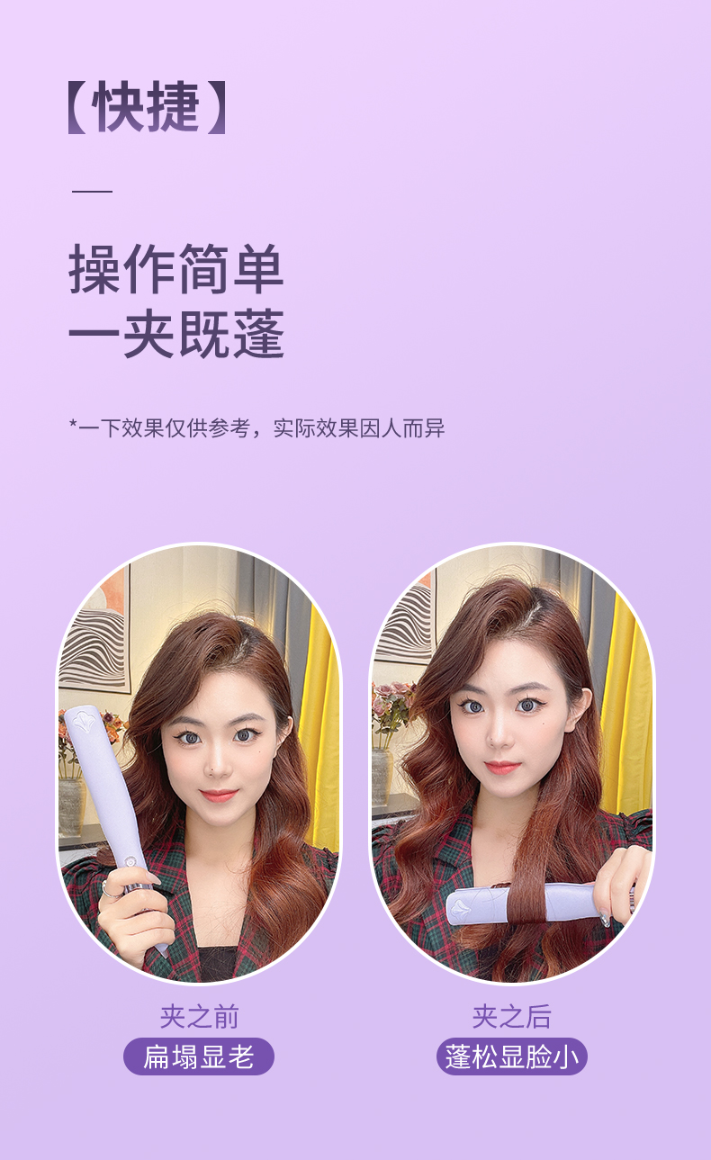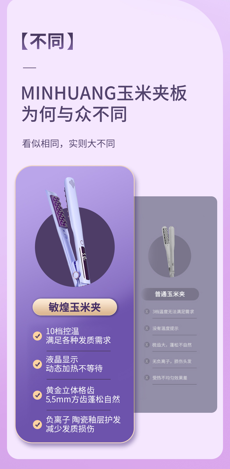 敏煌(MingHuang)玉米烫夹板发根负离子发根颅顶头发蓬松神器玉米须夹垫卷发棒 顶配款/千万负离子/10档调温HD-838A紫色(顶配款)